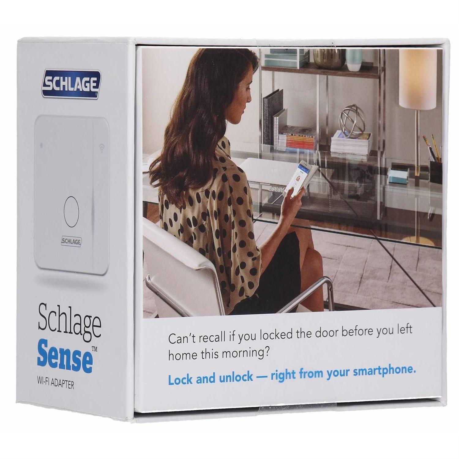 • Lock or unlock your Schlage Sense Smart Deadbolt remotely with this Wi-Fi adapter
