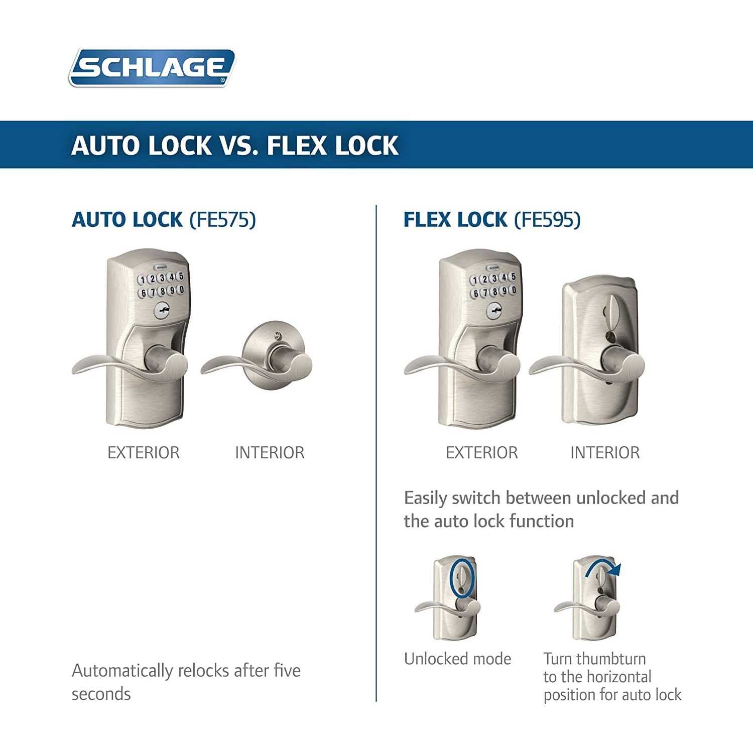- Auto-Lock feature automatically re-locks after 5 seconds