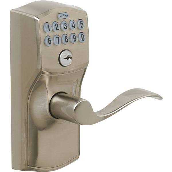 Schlage Camelot Design Keypad Entry with Accent Levers, Satin Nickel