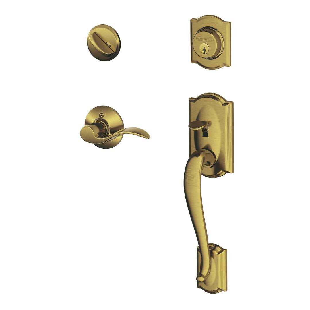 The Camelot handle set is charming and approachable with scalloped architectural details that add an air of playfulness to any home’s exterior. The Camelot trim is designed to suit the Camelot style of Schlage’s electronic products.