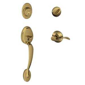 Camelot Single Cylinder Antique Brass Handleset with Right-Hand Accent Lever