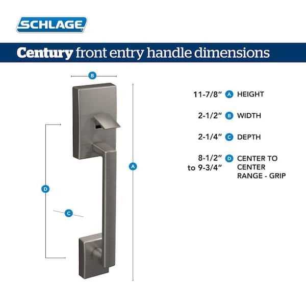Matte black finish handle from the Century collection adds a modern touch to your exterior door for enhanced curb appeal and home security. Reversible design allows left- or right-handed access for added convenience. Zinc construction is corrosion and weather-resistant to protect your home year after year. Dimensional handle and contemporary finish offer comfortable use, and pair with a variety of trim styles to create a grand entrance for your home. Easy, one-tool installation means you can quickly install it with just a screwdriver. Patented adjustable through-bolt slides up and down, so you don’t have to patch or re-drill your door. Grade 2 certified. Pair with Schlage electronic keypad deadbolt on front and exterior doors (sold separately).