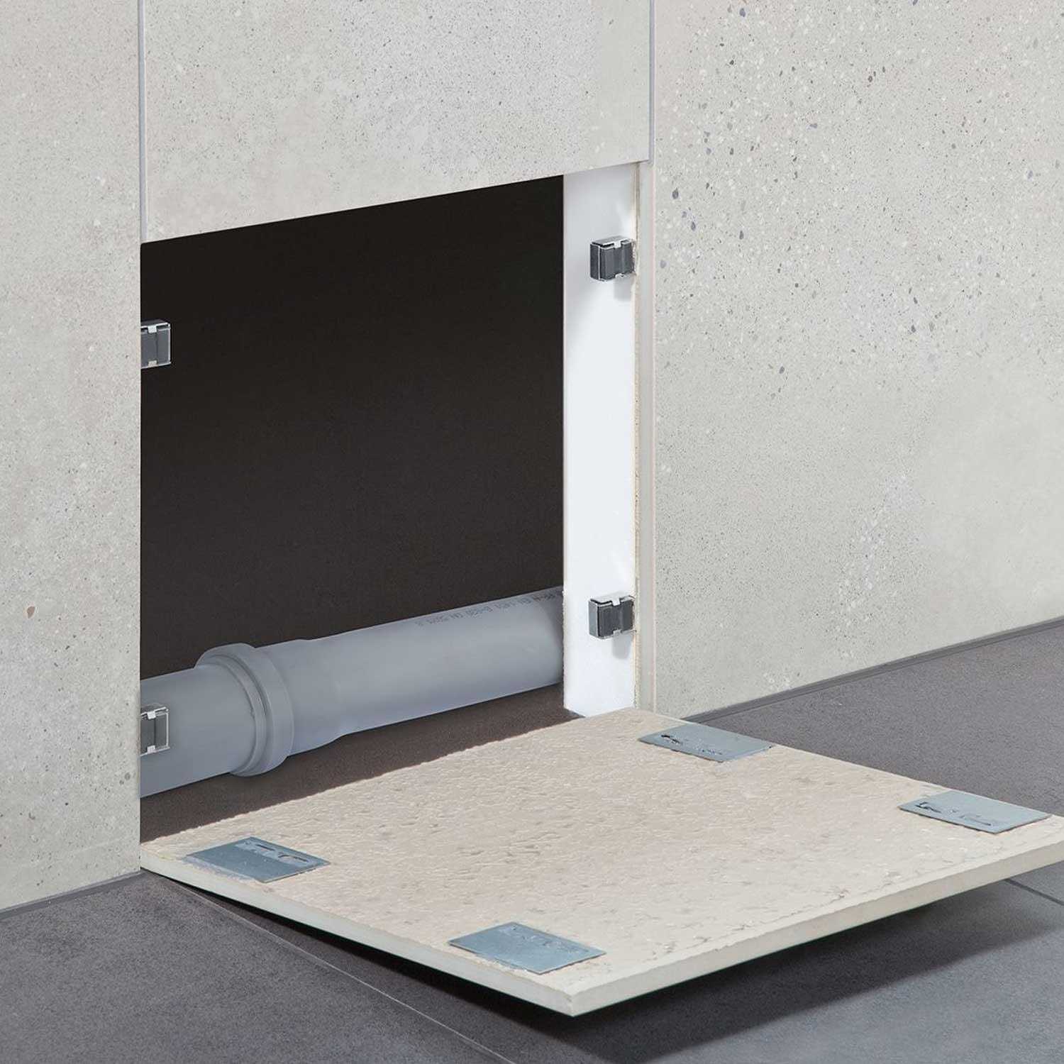 - Schluter Rema Mounting Plates, Used to create a hidden access point to plumbing.