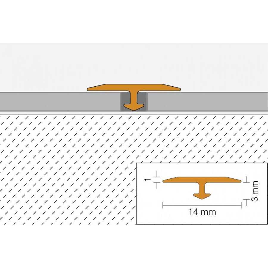 Vinpro-T by Schluter Systems creates smooth and even transitions between resilient floor coverings with the same height. The profile is ideal for new and retrofit installations. Its design has a T shape that overlaps the edges of the flooring material to hide cut edges and protect edges from damage. Featuring a brushed nickel anodized aluminum finish, this model accommodates 1/8-in (3-mm) thick resilient coverings.