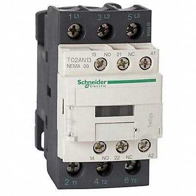 TeSys D contactors have been designed for perfect integration into control systems. They can be used to create motor starters for almost any type of application. TeSys D contactors are available in 13 contactor ratings for inductive motor applications up to 150 full-load amps and resistive loads up to 200 amps. This 50A inductive 3 pole IEC contactor can be mounted on DIN rail or mounted directly to a panel. Contactors have both Horsepower and Kw motor rating for international acceptance. Contactor is rated for 15HP at 200 to 208VAC, 15HP at 240VAC, 40HP at 480VAC and 40HP at 600VAC three phase. Contactor is also rated for 3HP at 115VAC and 7.5HP at 240VAC single phase. When used with a 480VAC up to 110A circuit breaker, this contactor can have a SCCR up to 100kA. When used with up to a 600VAC 110A Class J or CC fuse, this contactor can have a SCCR up to 100kA. Contactor is supplied with a 24 VAC 50/60 Hz coil. Contactor has one normally open and one normally closed auxiliary contact built-in as standard. The NC contact is mirror certified. Screw clamp terminals are used for load and auxiliary connections. An extensive line of accessories makes it easy to meet the requirements of most applications. The contactor is 4.80 inches tall, 2.17 inches wide and 4.72 inches deep. It weighs 1.87 lbs. Contactor is certified to UL, CSA, IEC, CCC, EAC and Marine standards. Contactor also meets the requirements of RoHS/REACh making it a Green Premium product.