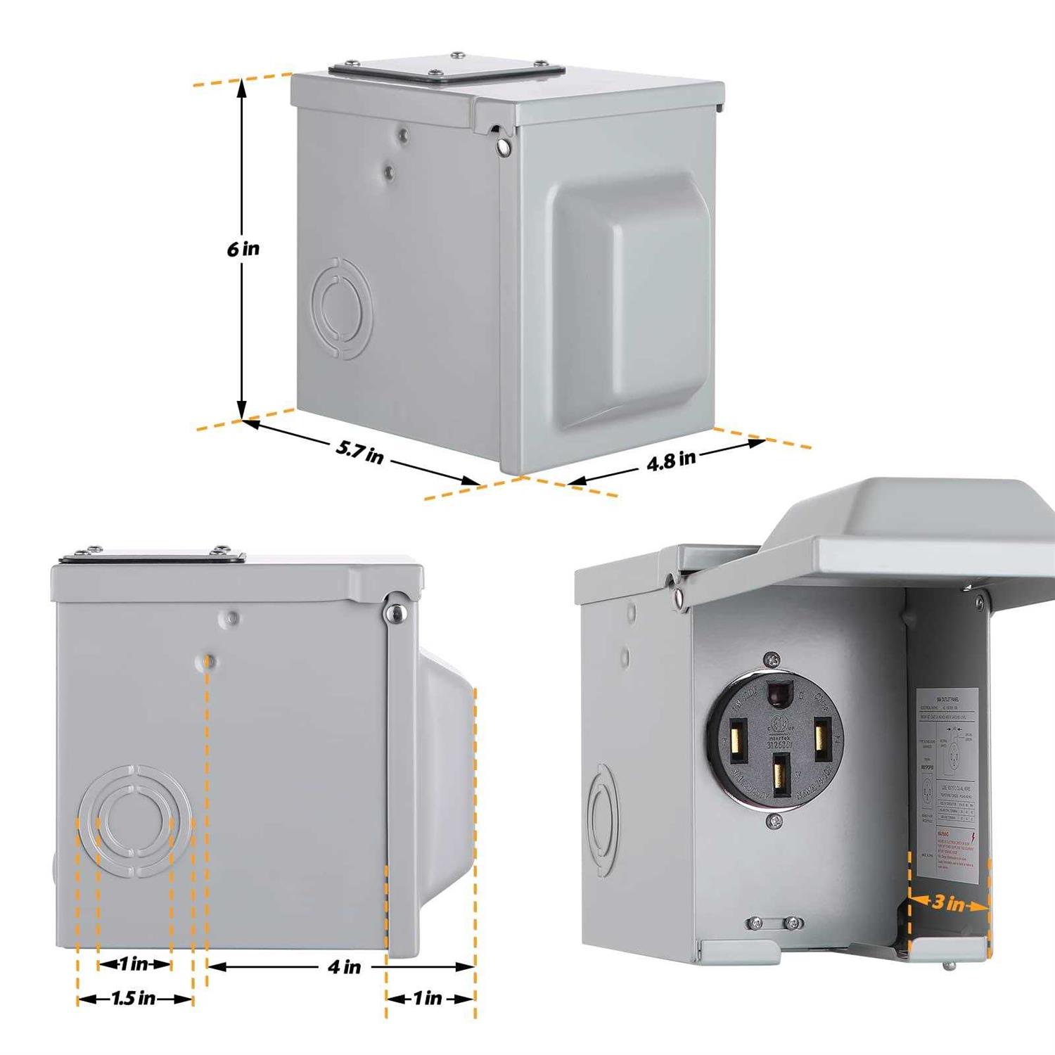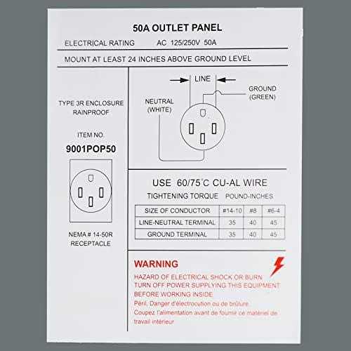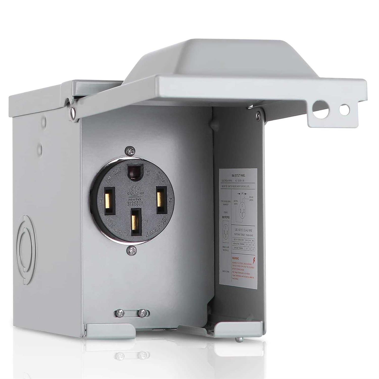 - 50A power outlet,NEMA 14-50R receptacle panel 125/250 Volt with type 3R enclosure that compatible with the normal 50A NEMA 14-50R RV cord.
