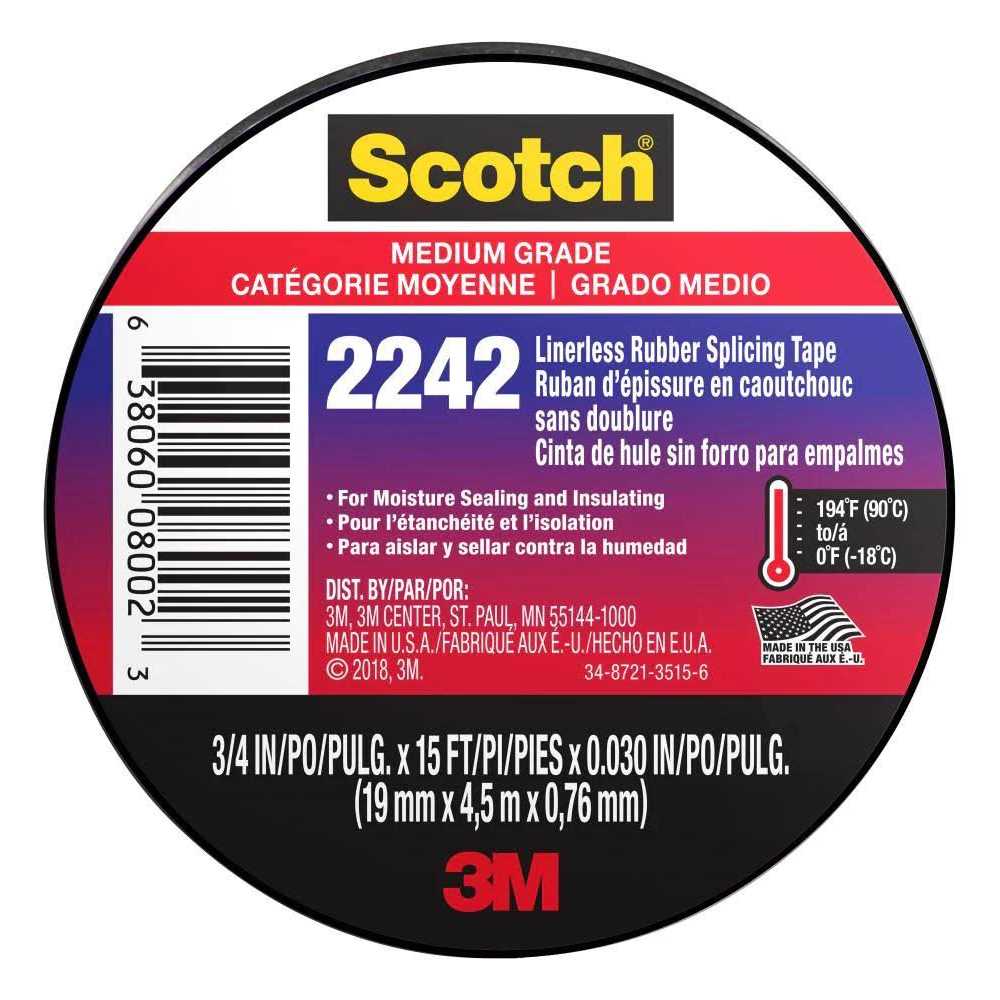 Alert pedestrians to hazardous work areas with Scotch 301 barricade tape. This 2-mil thick tape is backed with polyethylene film to prevent tears and has a clear “CAUTION” message to help reduce potential communication miscues. Use this economical barricade tape around sites for utilities such as water and sewer or to cordon off industrial or commercial construction areas. Scotch 2242 Electrical Tape is an economical, general purpose, rubber tape. The tape is a highly conformable, linerless EPR Ethylene Propylene Rubber based electrical insulating tape. The tape is designed for use in splicing and terminating wires and cables rated up to 90C. The tape will meet industry specifications for flame retardance and has the necessary physical and electrical properties to provide immediate moisture seals and voidfree buildup.