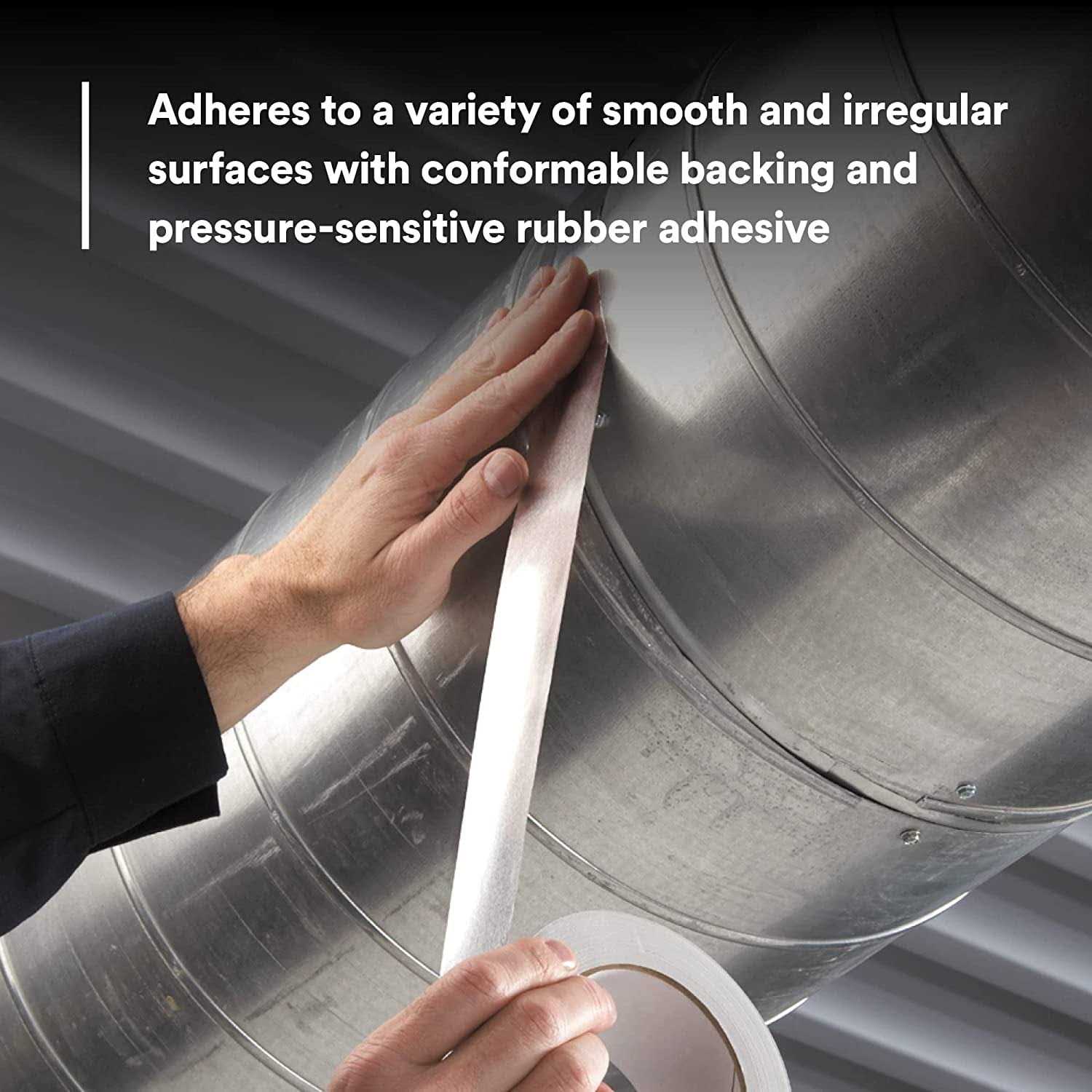 Scotch-« Foil tape 3311 is a conformable tape with silicone-treated liner that unwinds easily to minimize errors and wasted tape. It is flexible and easy to apply in tight spaces, making it the ideal tape for duct repairs. The soft aluminum foil also conforms to irregular surfaces and provides a reliable vapor barrier.