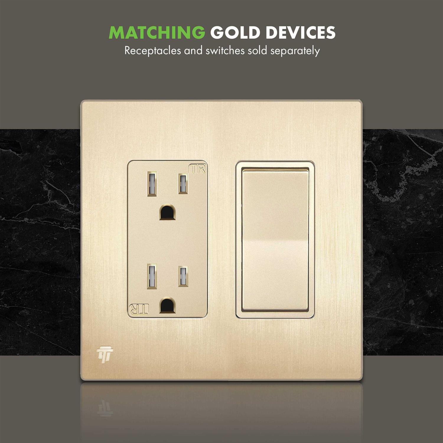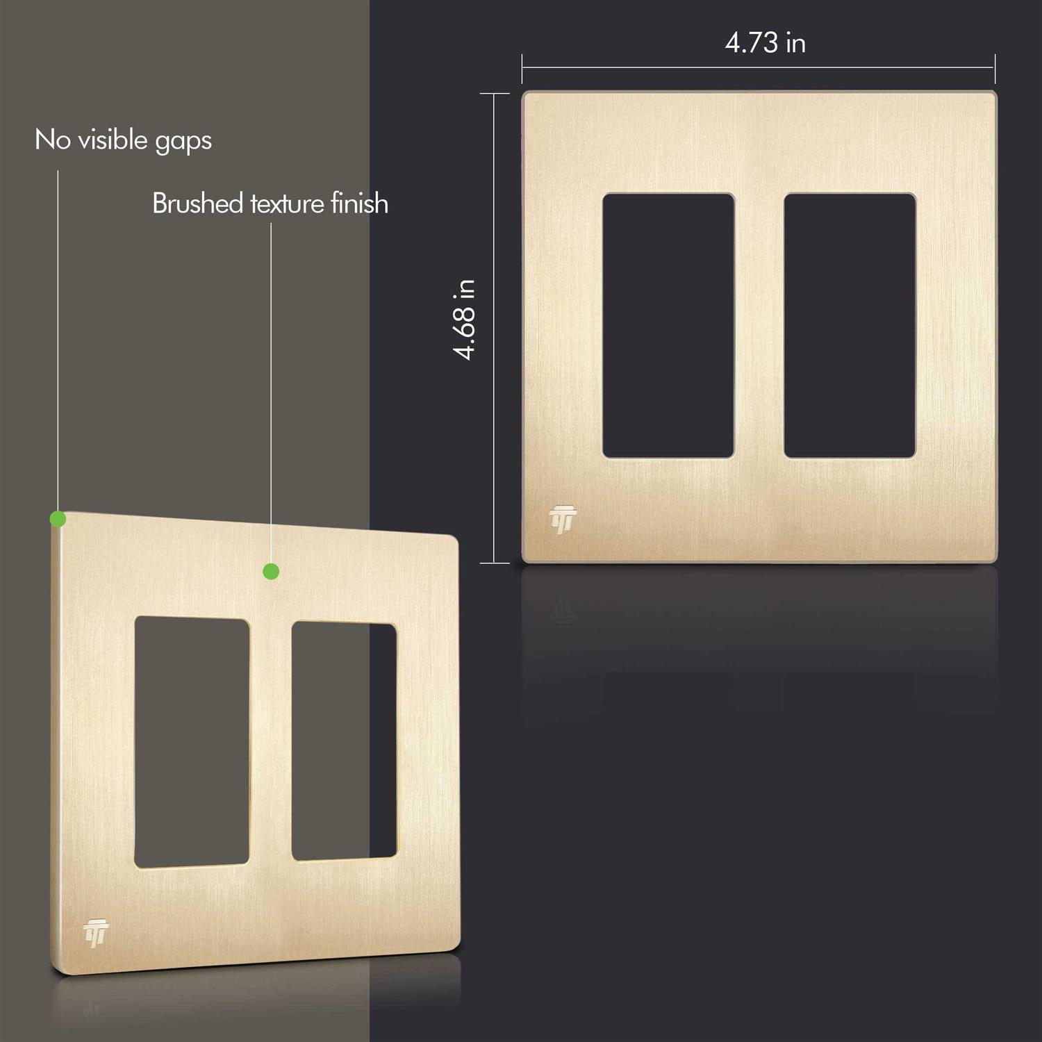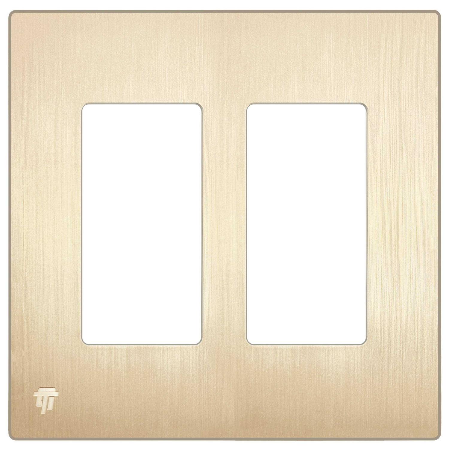 Enerlites Elite 4.68 in. H x 4.73 in. L, Brushed Gold 2-Gang Screwless Decorator Wall Plate
