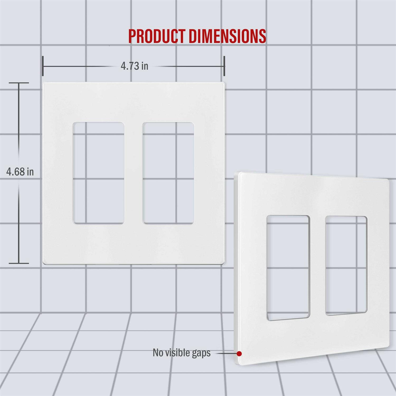- Easy replacement of any decorator wall plate of the same configuration; standard size dimensions: 4.68 in. H x 4.73 in. L