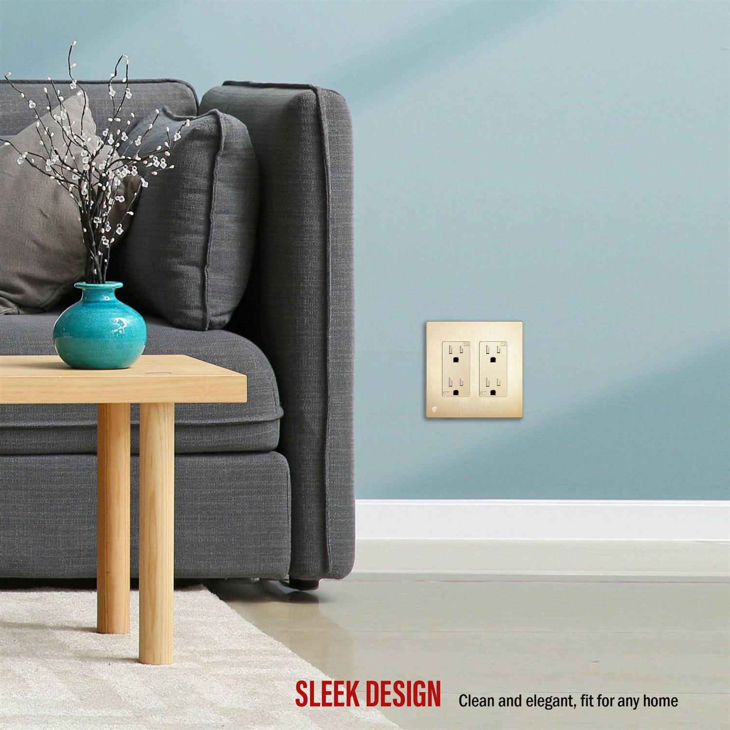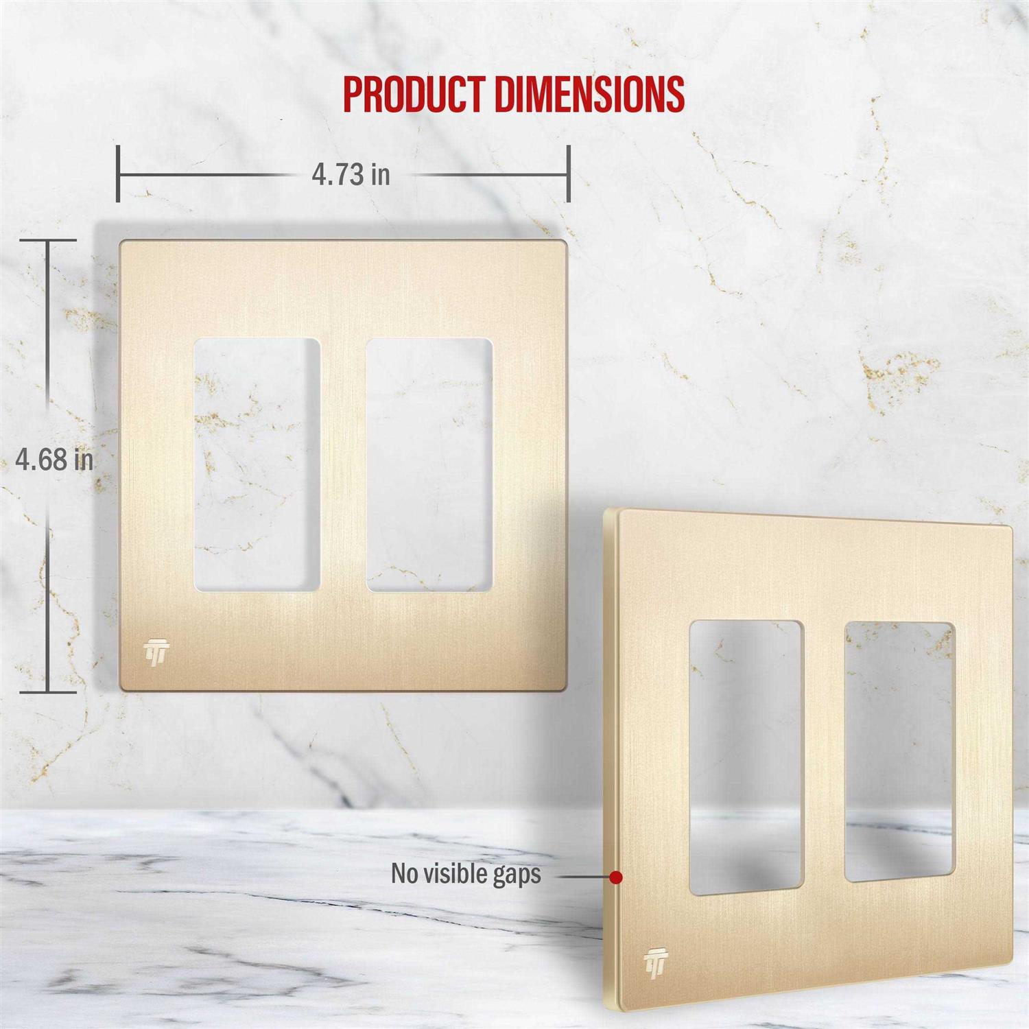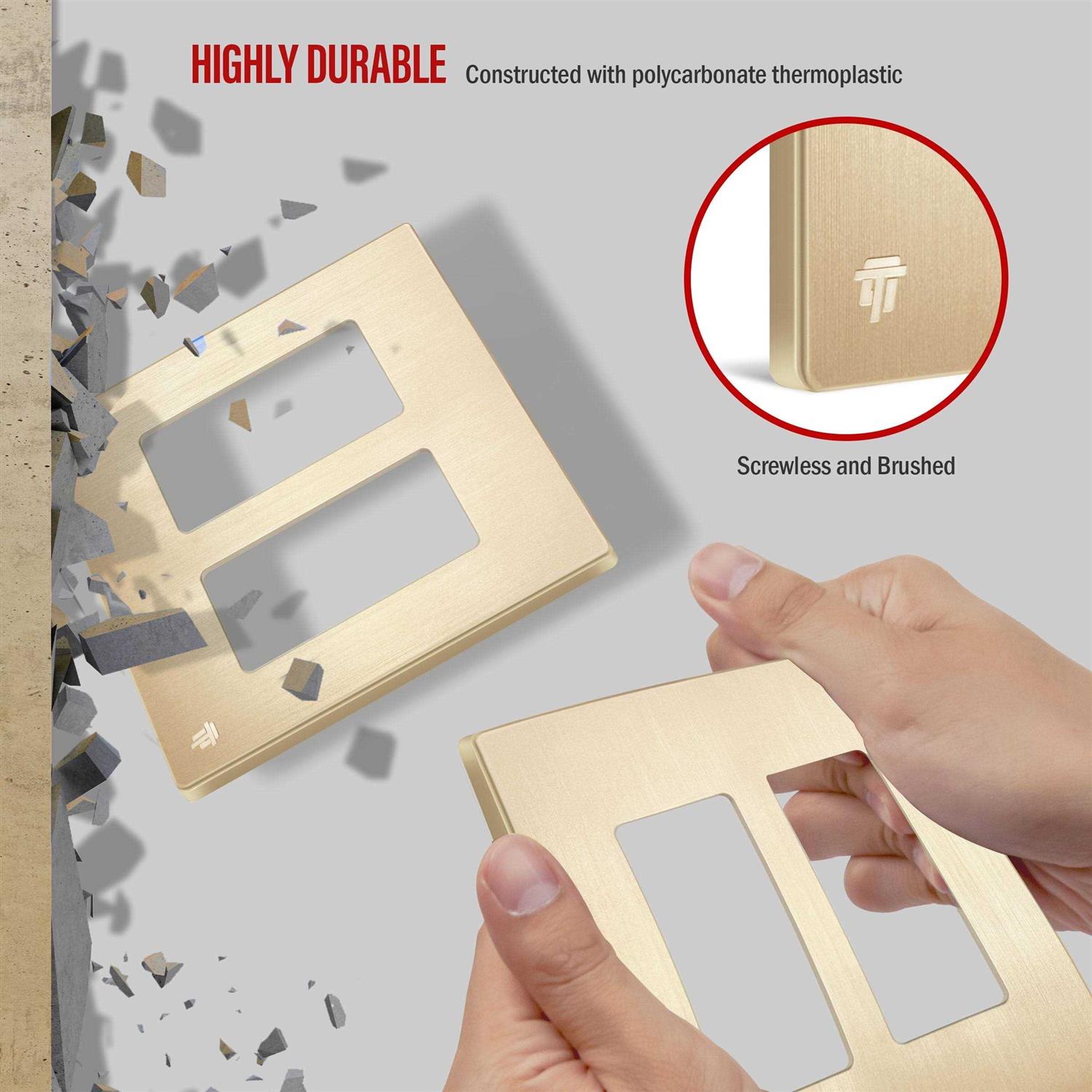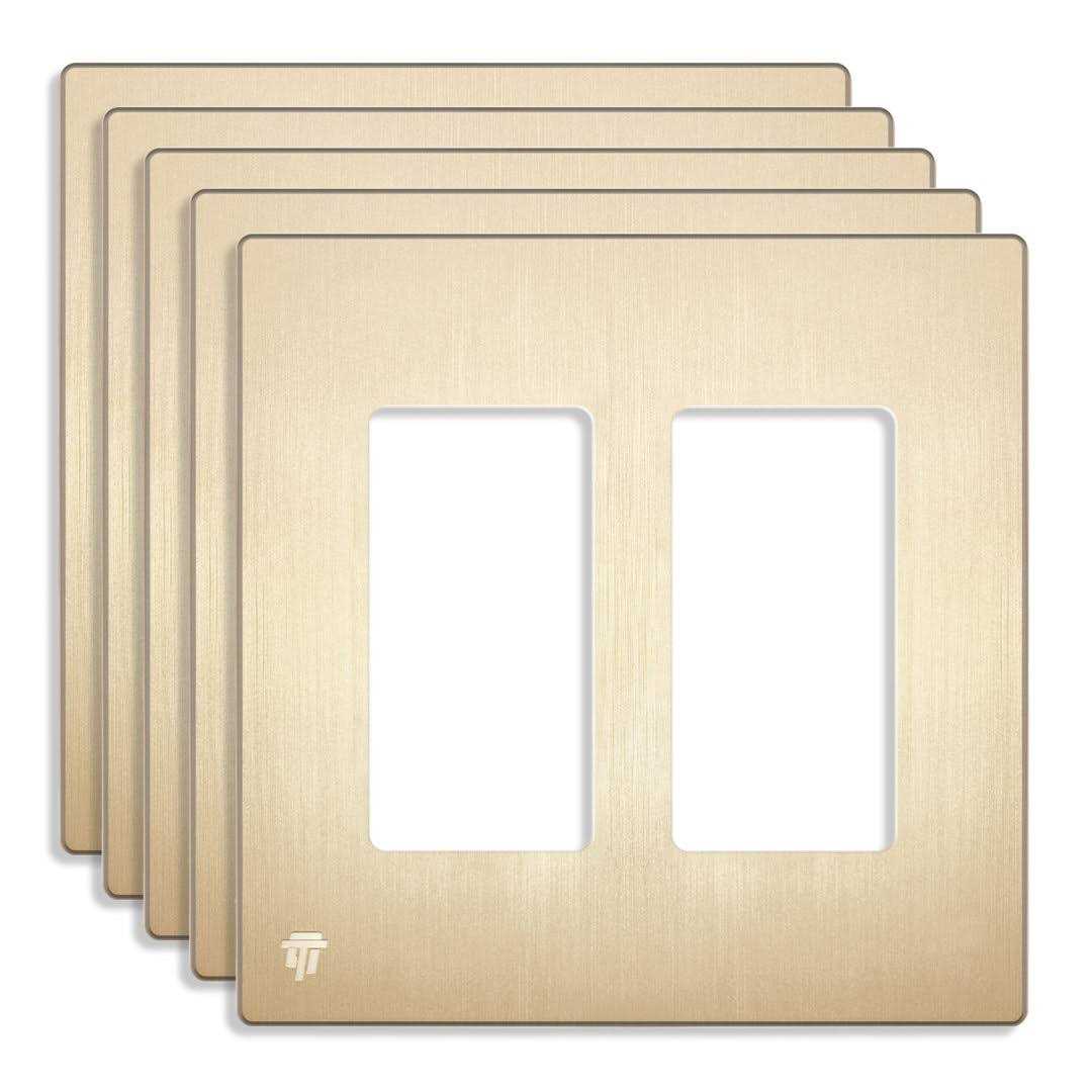 Enerlites Brushed Gold 2-Gang, Decorator/Rocker, Plastic Polycarbonate, Screwless Wall Plate (5-Pack)