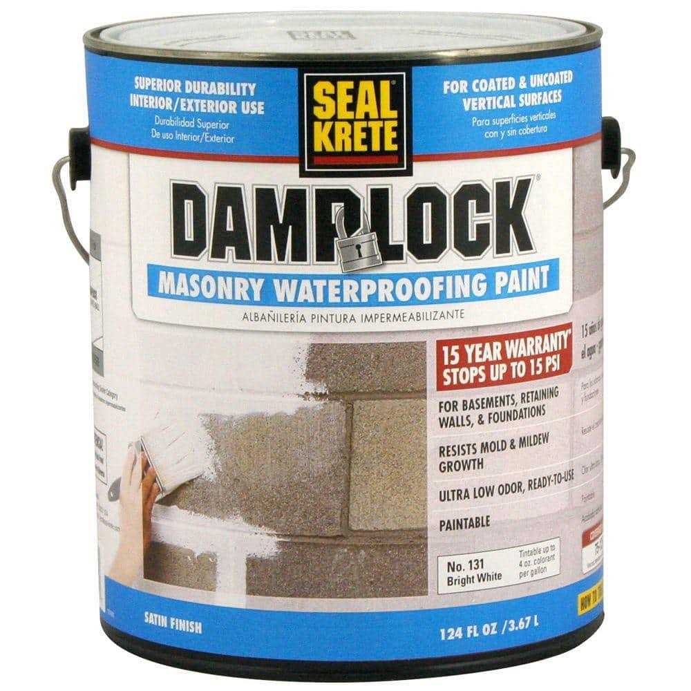 Seal-Krete Damplock Masonry Waterproofing Paint is a ready-to-use, ultra low odor formula for concrete and masonry. Suitable for above and below grade use, DampLock Masonry Waterproofing Paint withstands up to 15 psi of hydrostatic pressure meeting the ASTM standard for below grade waterproofing. It reduces radon gas penetration through basement walls and is ideal for use on concrete and cinder blocks, retaining walls, bird baths, pre-cast fixtures and foundations.