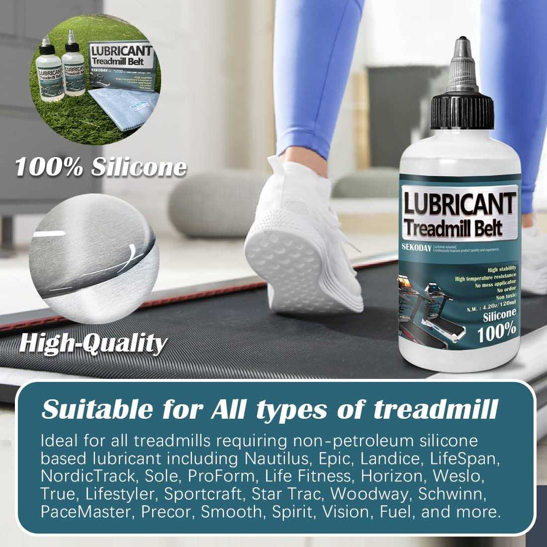 SEKODAY 100% Silicone Treadnmill Belt Lubricants/Lubes | Non Toxic and Odorless | High Cost Performance and High Stability | with Precision Screw Caps