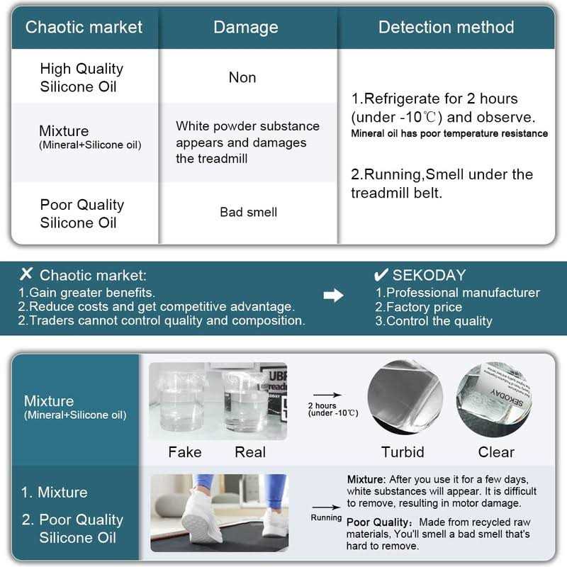 Reasons for choosing us: Professional production of customized silicone oil: – colorless and transparent, 100% silicone lubricant (non-toxic and colorless, high temperature resistance up to – 158 °C) ~ 590 °C, high stability and high lubricity) 2. Easy to use: just lift the treadmill belt and squeeze the liquid in to complete the operation 3. Eliminate confusion – easy to smear, regular filling can reduce the noise of the treadmill and prolong the service life of the treadmill. Good faith management principle: Note: those unprofessional sellers tell you that silicon lubricant is suitable for lubrication of all products! This is a misleading behavior! How to use it? Usage 1: 1. Lift the treadmill belt. Squeeze in the liquid and repeat on the other side of the treadmill belt. Usage 2: 1. If your treadmill has a lubricating oil filling port, you can fill it directly.