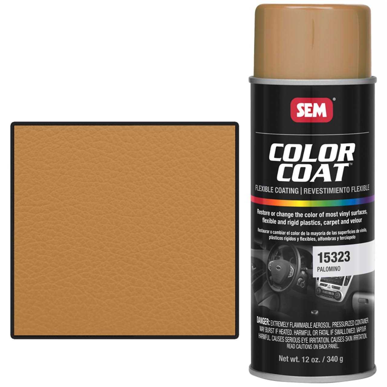 SEM Color Coat Aerosols are formulated to match, restore or change color on most vinyl surfaces, flexible and rigid plastics, carpet and velour. Fade resistant and flexible, Color Coat is not a dye but a permanent paint coating. This OEM Recommended coating has superior adhesion, flexibility and hiding capabilities. It will not crack and dries quickly to touch, however it takes 24 hours to completely cure.