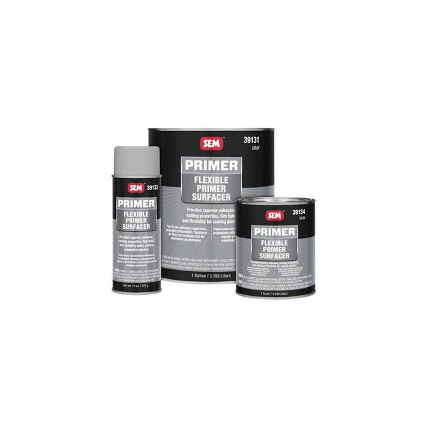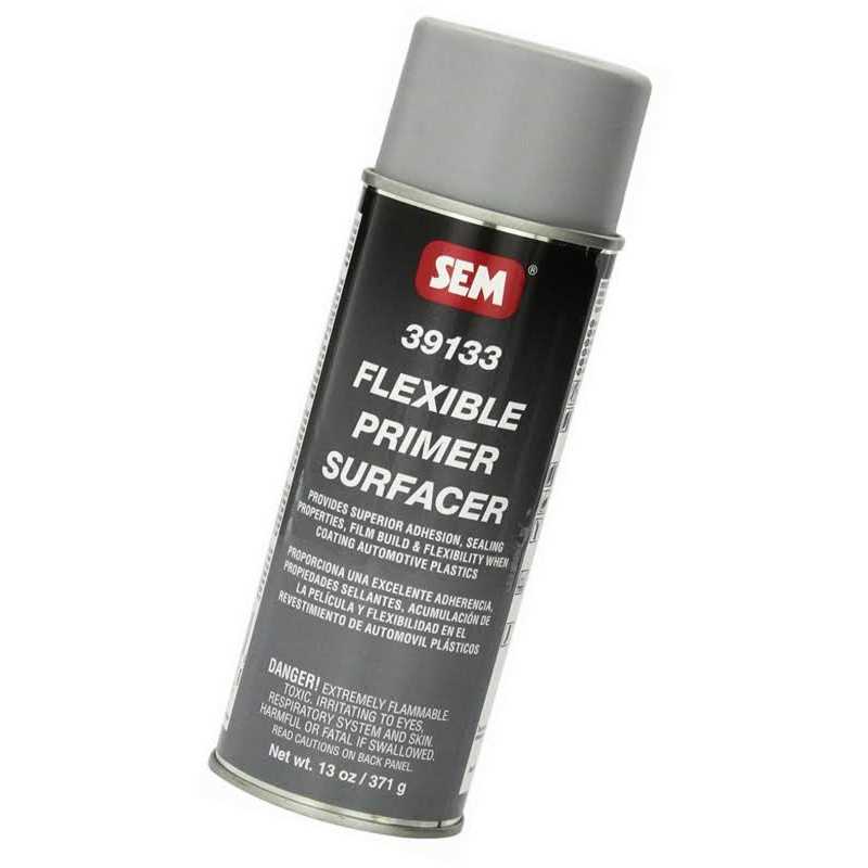 SEM Flexible Primer Surfacer provides superior film build and flexibilityReady to spray; Quick drying; Easy to sand; Flexible formulation; Topcoat with most refinish materials; Flexible Primer Surfacer is a flexible, sandable primer capable of adhering to difficult plastics and hiding minor surface defects. This convenient aerosol primer is ideal for flexible bumper repairs. Can also be used on urethane’s, plastics, and other substrates. Builds quickly thanks to its high solids formulation. Sands easily. Compatible with most automotive finishes. One can covers about 10 square feet.