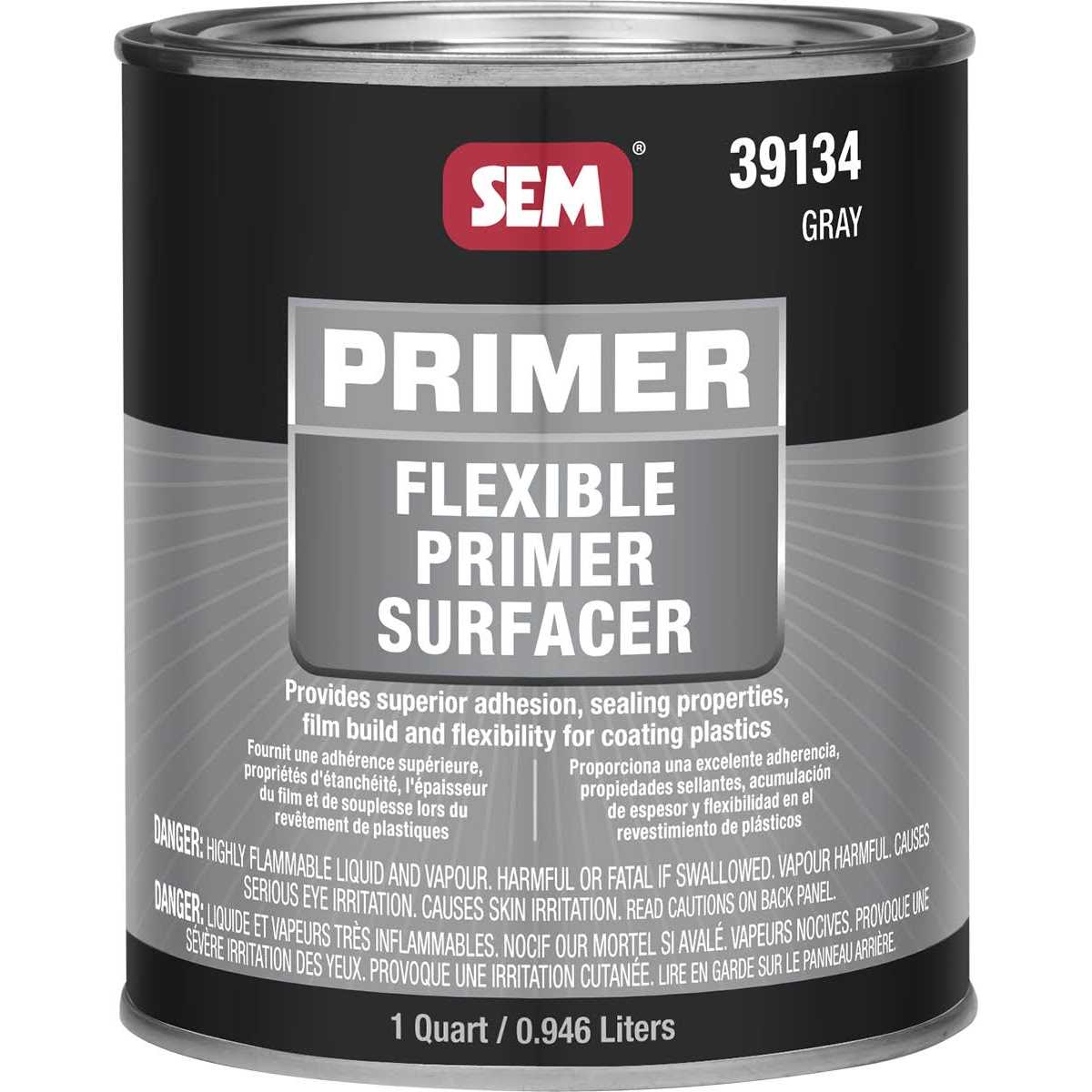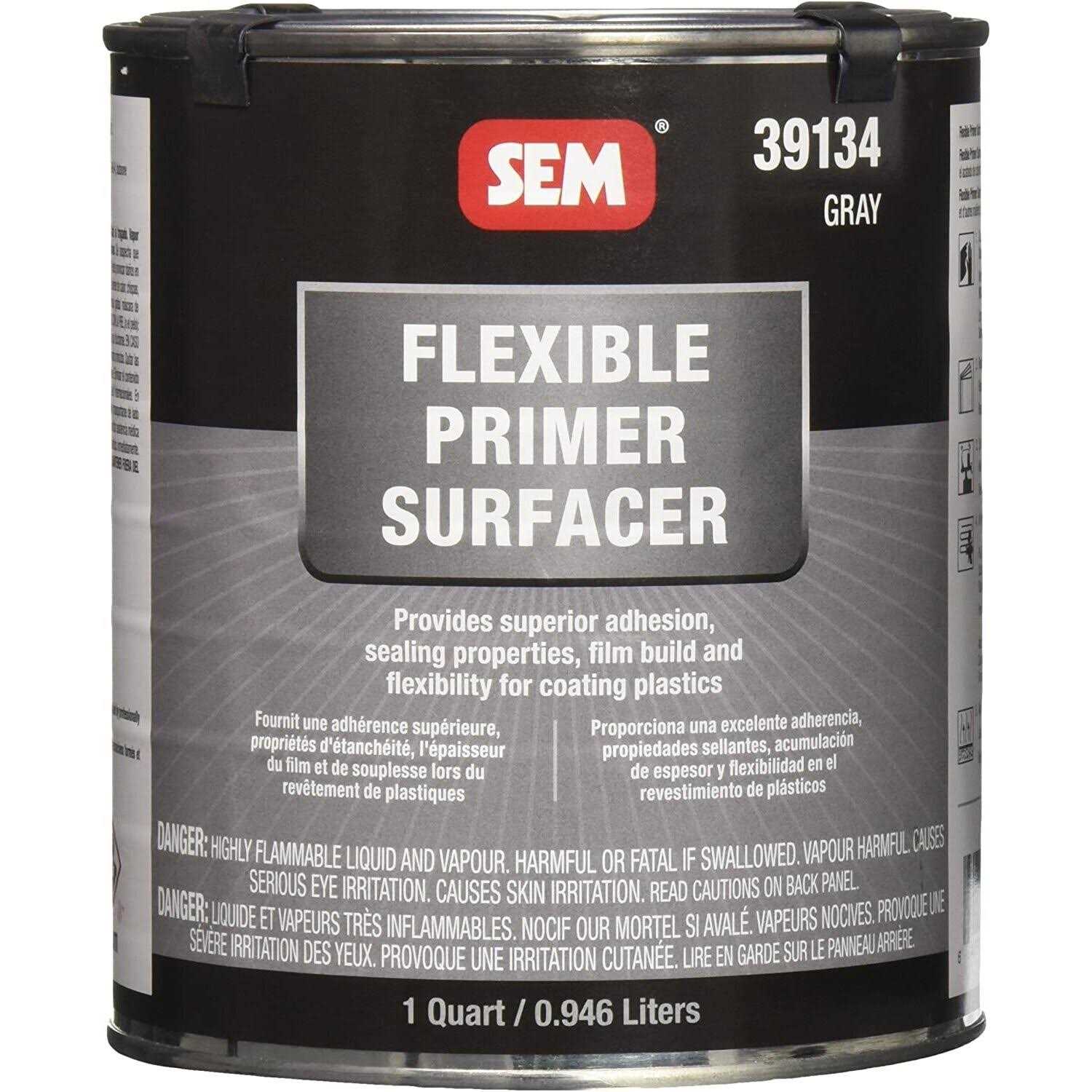 SEM Products Inc SEM-39134: Paint, Flexible Primer Surfacer, Flat Gray, Aerosol, 1 qt., Each – Prepare your urethane and plastic projects with SEM Products flexible primer surfacers. A smooth surface makes for a better finish and these surfacers have a higher solids formulation for faster build. SEM flexible primer surfacers are ready to spray and offer quick drying and easy sanding. Before you paint, you prime; make the right choice to gain the perfect surface for painting with SEM Products flexible primer surfacers.