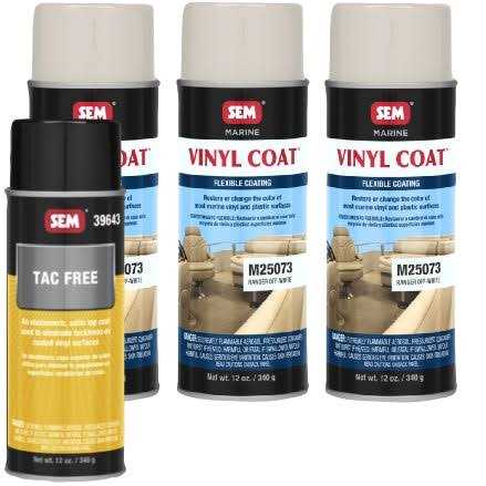 Vinyl Coat is an elastomeric coating formulated to match, restore, or change the color of most marine vinyl surfaces and flexible, rigid plastics. The formulation is not a dye, but rather a fade-resistant, flexible, and permanent coating with UV inhibitors. Vinyl Coat will not crack and features superior adhesion. Simple to use, the coating dries quickly to reveal your improved color appearance.