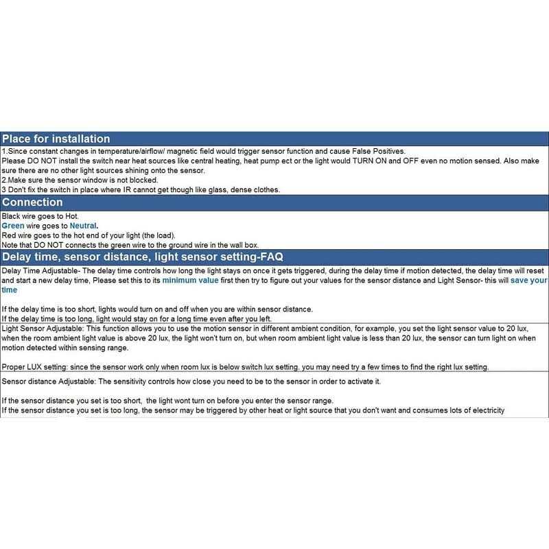 - Adjustable Time-Delay For Customizing: Min: 10Sec±3Sec Max.:30Min±2Min (The Load Will Stay On For The Time You Set , Then Go Out)