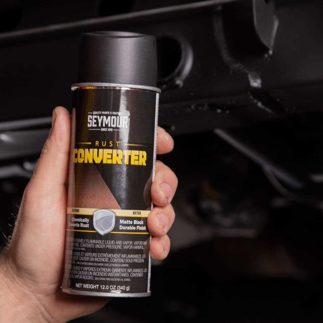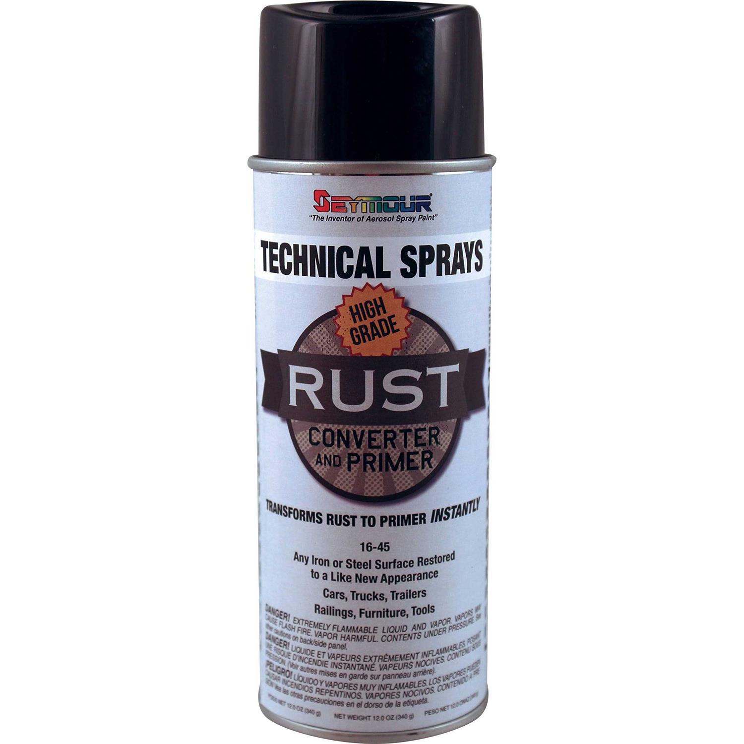 SEYMOUR rust converter and primer can be applied to any iron or steel surface to penetrate rust and turn it into a protective black coating. This protective coating will be resistant to moisture and prevents future rust growth. Just remove any loose rust then apply it like a primer to rusted surfaces. Greatly reduces time spent wire brushing and sanding. A topcoat is required for maximum rust protection.