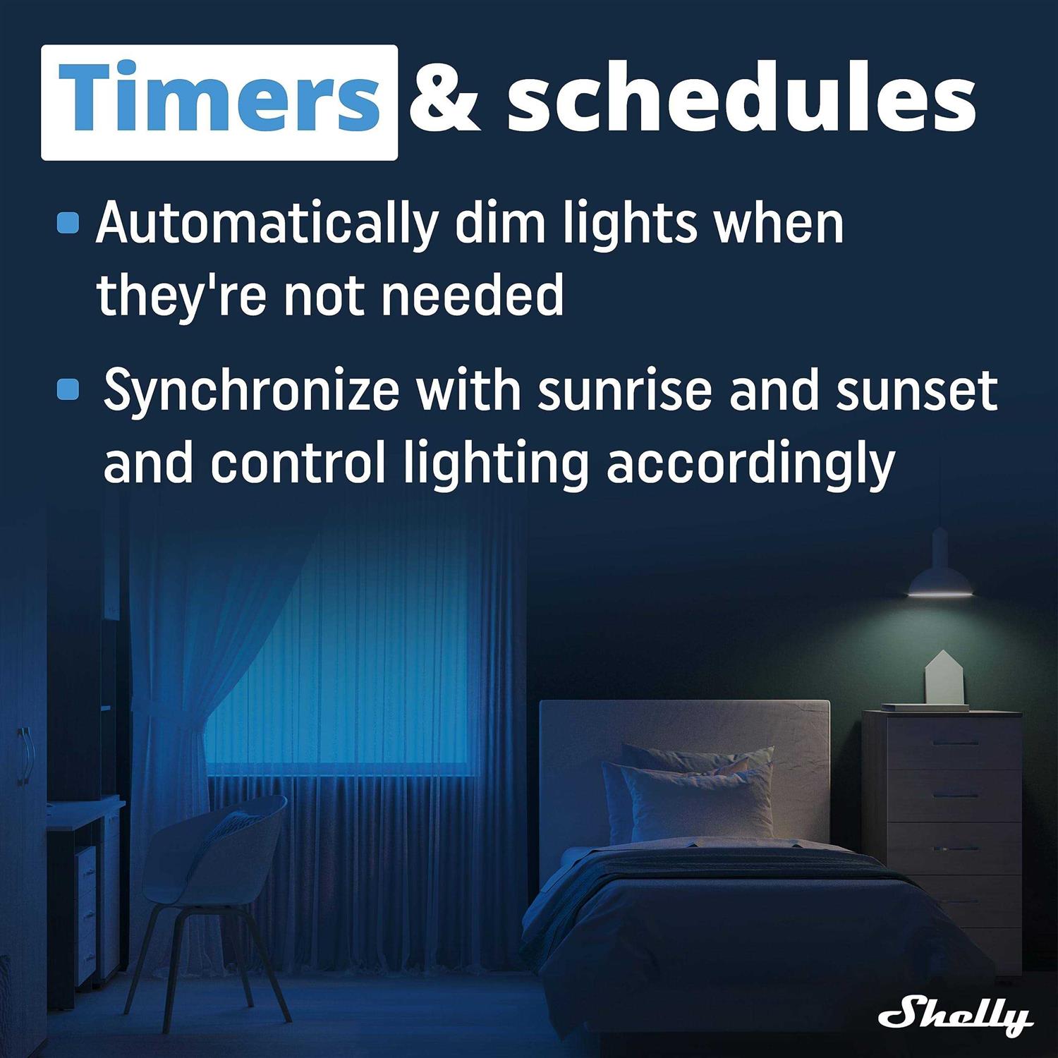 Shelly Plus Wall Dimmer is a Wi-Fi & Bluetooth, UL Certified, Next-Generation Wi-Fi Wall Dimmer relay switch, with dimming and brightening functions. Shelly Plus Wall Dimmer can function as a standalone device, as an accessory to a home automation controller, or it may be used as another automation system’s component. TIMER CONTROLLER FOR MAXIMUM COMFORT AND INTUITIVE NIGHT MODE – Many kids prefer to fall asleep with the lights turned on. Shelly Plus Wall Dimmer supports “Night Mode, ” allowing you to set a brightness level for your lights after a certain hour. SLEEK DESIGN AND ENHANCED SECURITY VIA RPC PROTOCOL – With sleek styling and an intuitive touch slider for dimming and brightening, the new Shelly Plus Wall Dimmer US is UL-certified and functions as a standalone device or integrated into virtually any control or automation platform connected directly to Wi-Fi. RPC over MQTT, HTTP, UDP, Receive notification in case someone is trying to dislocate it.! SHELLY SMART CONTROL APP will help you control your Shelly devices remotely and will send notifications for all automated events in your home. You can easily configure devices and manage their settings individually, or you can create personalized scenes by combining Shelly devices to trigger certain actions in your home automation. p strong Shelly Plus Wall Dimmer /strong – UL Certified, Next-Generation Wi-Fi Wall Dimmer. With sleek styling and an intuitive touch slider for dimming and brightening, the new Shelly Plus Wall Dimmer is UL-certified and functions as a standalone device or integrated into virtually any control or automation platform connected directly to Wi-Fi. – strong Lighting control with UL-certified Wi-Fi Wall Dimmer from Shelly /strong – Introducing the new Shelly Plus Wall Dimmer US – a sleek and UL-certified device that can function as a standalone or integrated into any control platform connected to Wi-Fi. With a simple 4-wire design, quick Bluetooth inclusion, and automatic calibration, it saves integrators time and eliminates complexity in the smart home installation process. – strong Lights that follow any schedule /strong :Set smart scenes based on a particular hour or sunset/sunrise with Shelly Plus Wall Dimmer! That way, they can set the lights in the hallway to switch on and increase the level of brightness as the sunset hour approaches. – strong Smart timers for maximum comfort /strong : Many kids prefer to fall asleep with the lights turned on. – strong Intuitive night mode /strong : Shelly Plus Wall Dimmer supports “”Night Mode, “” allowing you to set a brightness level for your lights after a certain hour. That way, you don’t have to worry about disturbing the rest of the family when they wake up at night. – strong No lights left switched on /strong : Never worry if you have forgotten a light at home switched on before leaving for work or a family vacation. Shelly Plus Wall Dimmer can be controlled from anywhere around the globe! – strong Shelly Plus Wall Dimmer is adjustable /strong via the app settings to customize the LED light behind the “”Power on/off”” indicator. /p