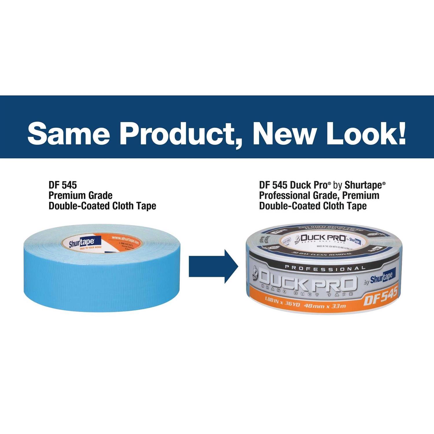 Duct Tape by Shurtape. Details:Double-sided carpet and duct tape for holding, seaming and securing carpet, rugs and carpet pad, and can also be used for general purpose hanging and splicing applications. Engineered with a versatile adhesive system that provides superior adhesion to concrete, tile, hardwood and irregular surfaces, as well as a special poly laminate layer that provides high tensile strength, DF 545 is constructed to stand up to demanding applications.