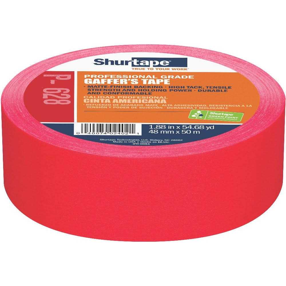 Shurtape P-628 Professional Grade, Coated Gaffer’s Tape, 48mm x 50m, Red, 1 Roll