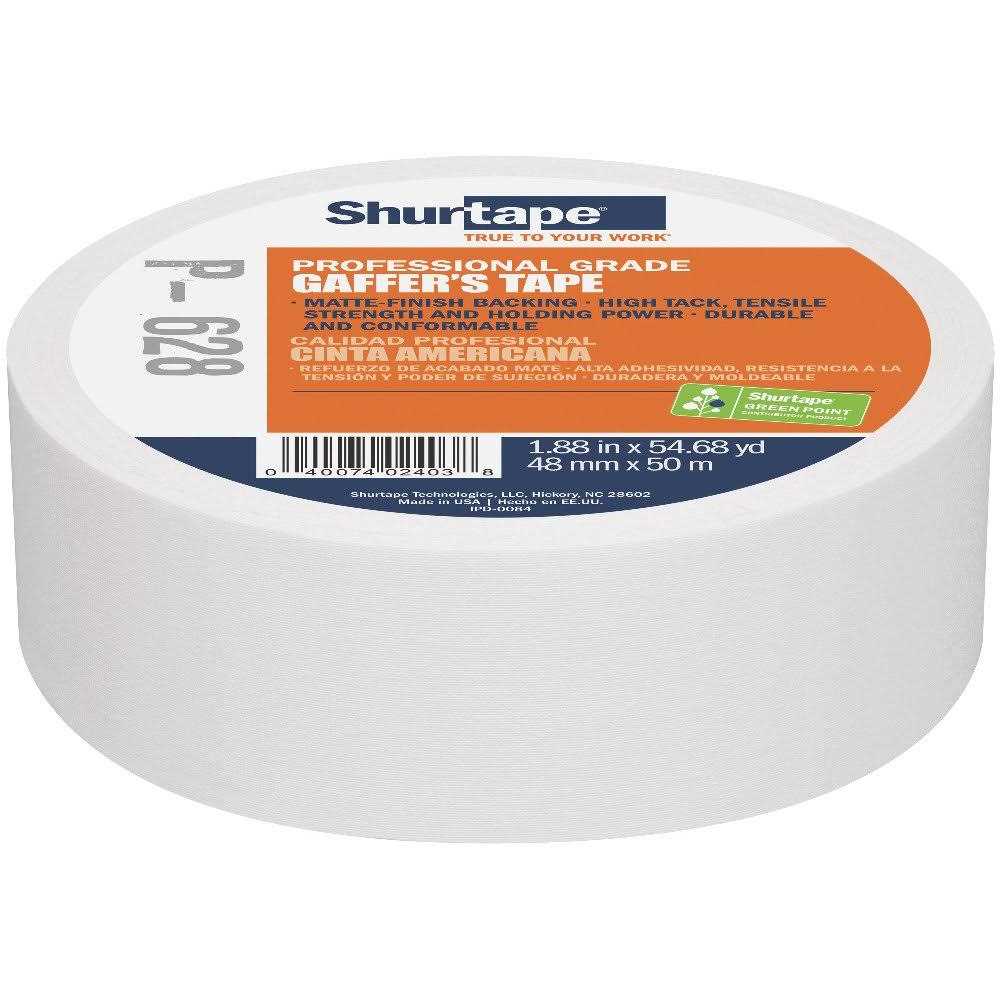 Shurtape P- 628 Professional Grade, Coated Gaffer’s Tape, 48mm x 50m, 1 Roll White