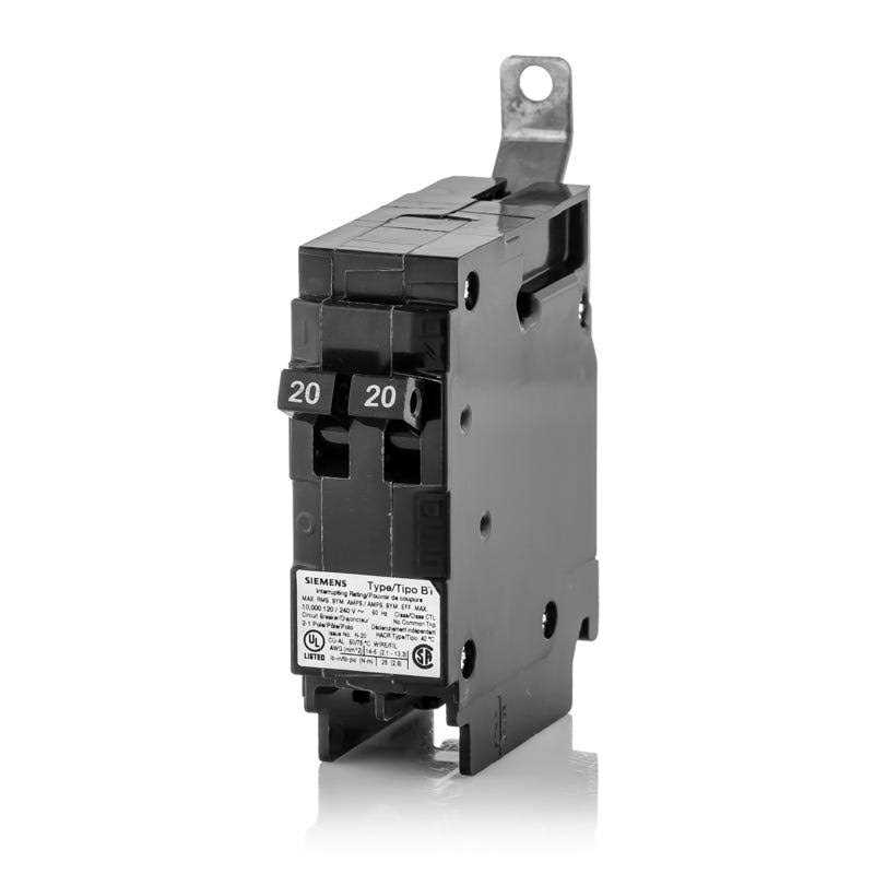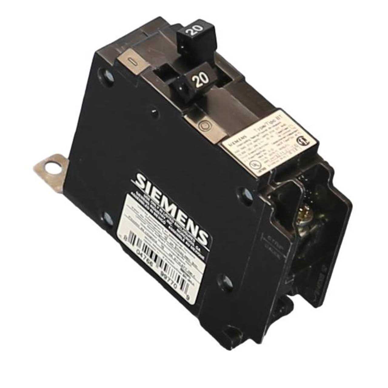 Siemens B2020 2 Pole Circuit Breaker The Siemens B2020 is a 2 Pole thermal magnetic molded case circuit breaker with a current rating of 20 Amps and a voltage rating of 240VAC. It has an interrupting rating of 10kAIC@240V. The B2020 has a bolt-on connection type and includes long time and instantaneous trip functions.