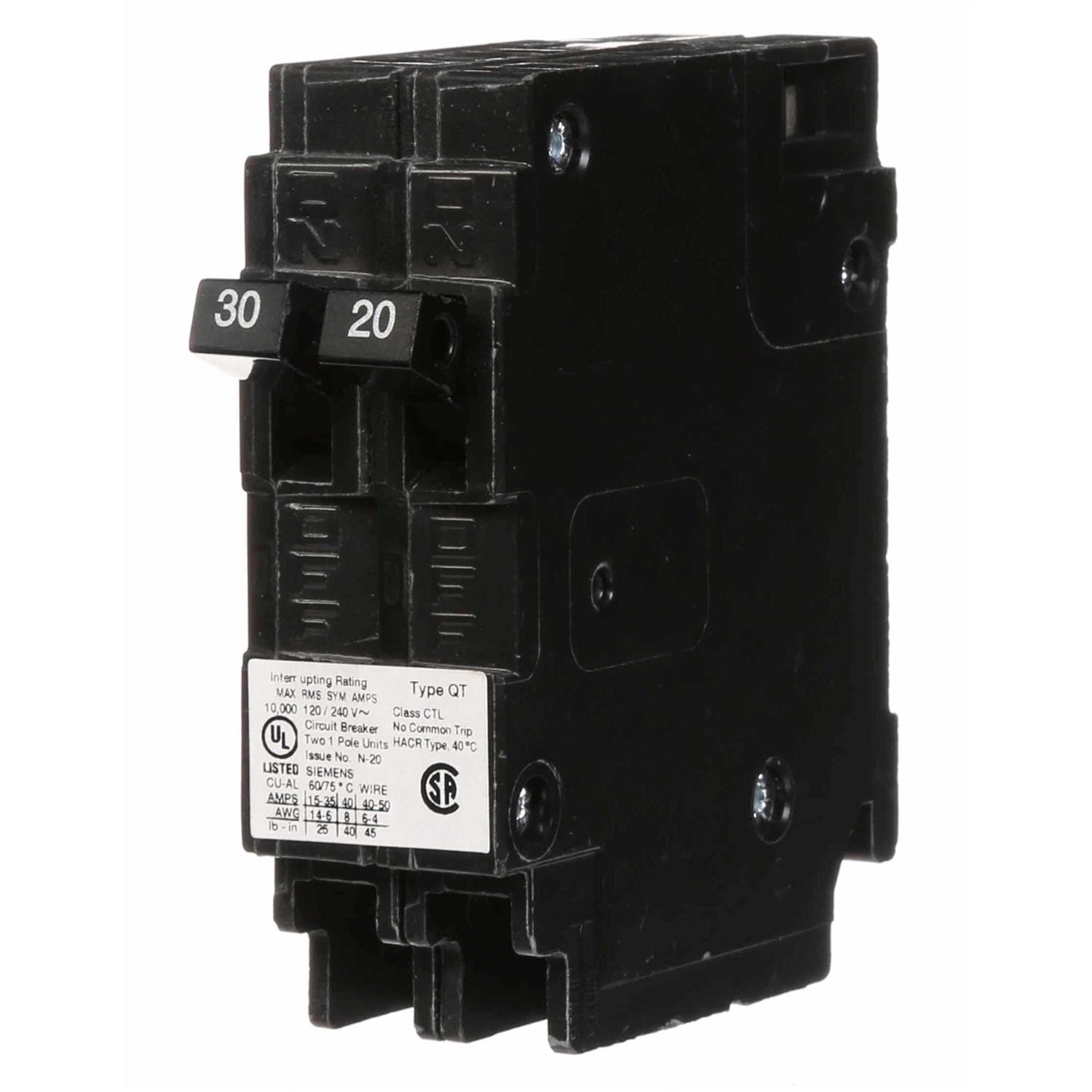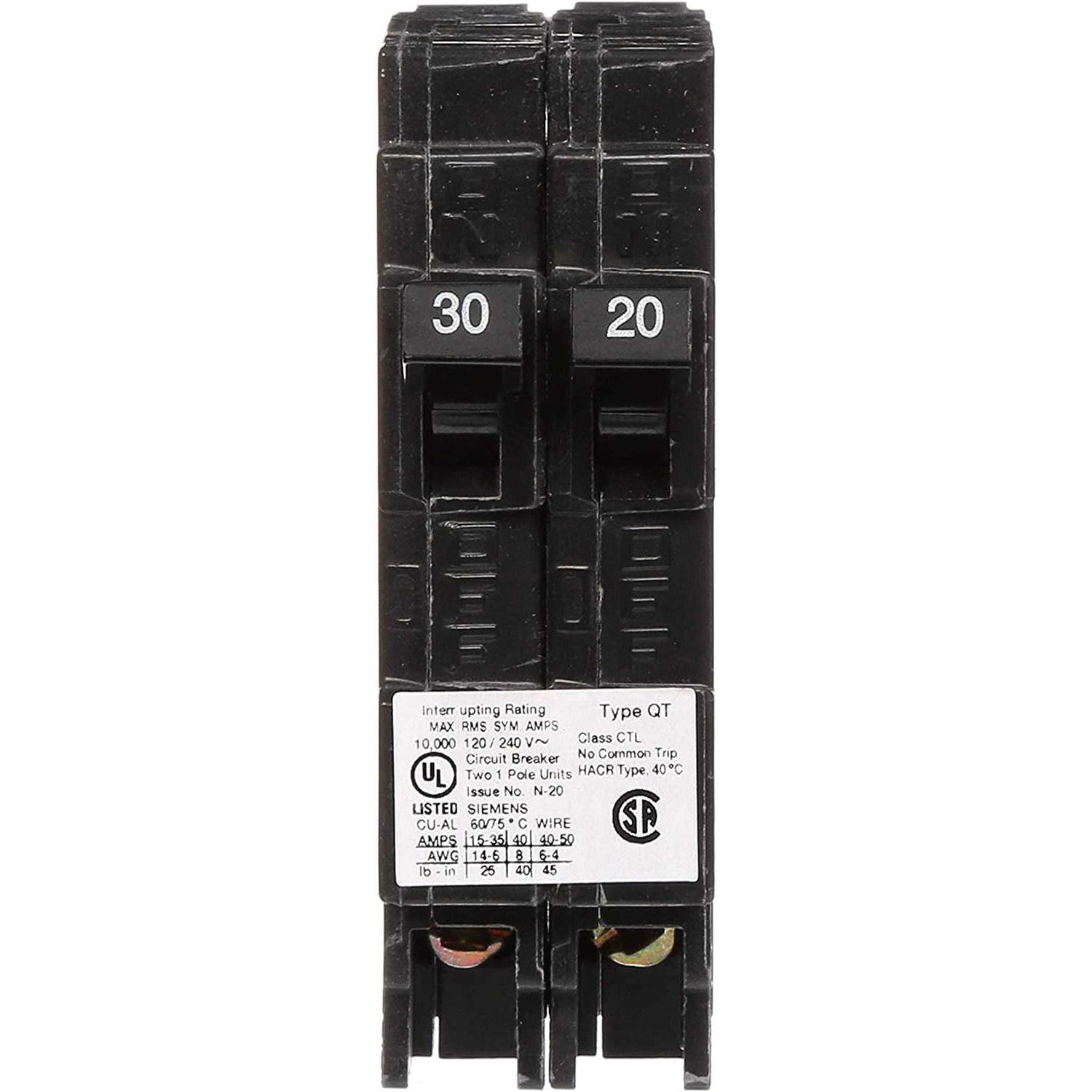 Siemens 1-Pole Circuit breaker operates at a rating of 20 – 30 Amps and 120 VAC. Space saver duplex breaker combine two independent 1/2 Inch breaker poles in a common unit. It has a interrupt rating of 10 kilo-Amps and is suitable for plug-on mounting. It operates at temperature range of 40 deg C. Circuit breaker is HACR rated.