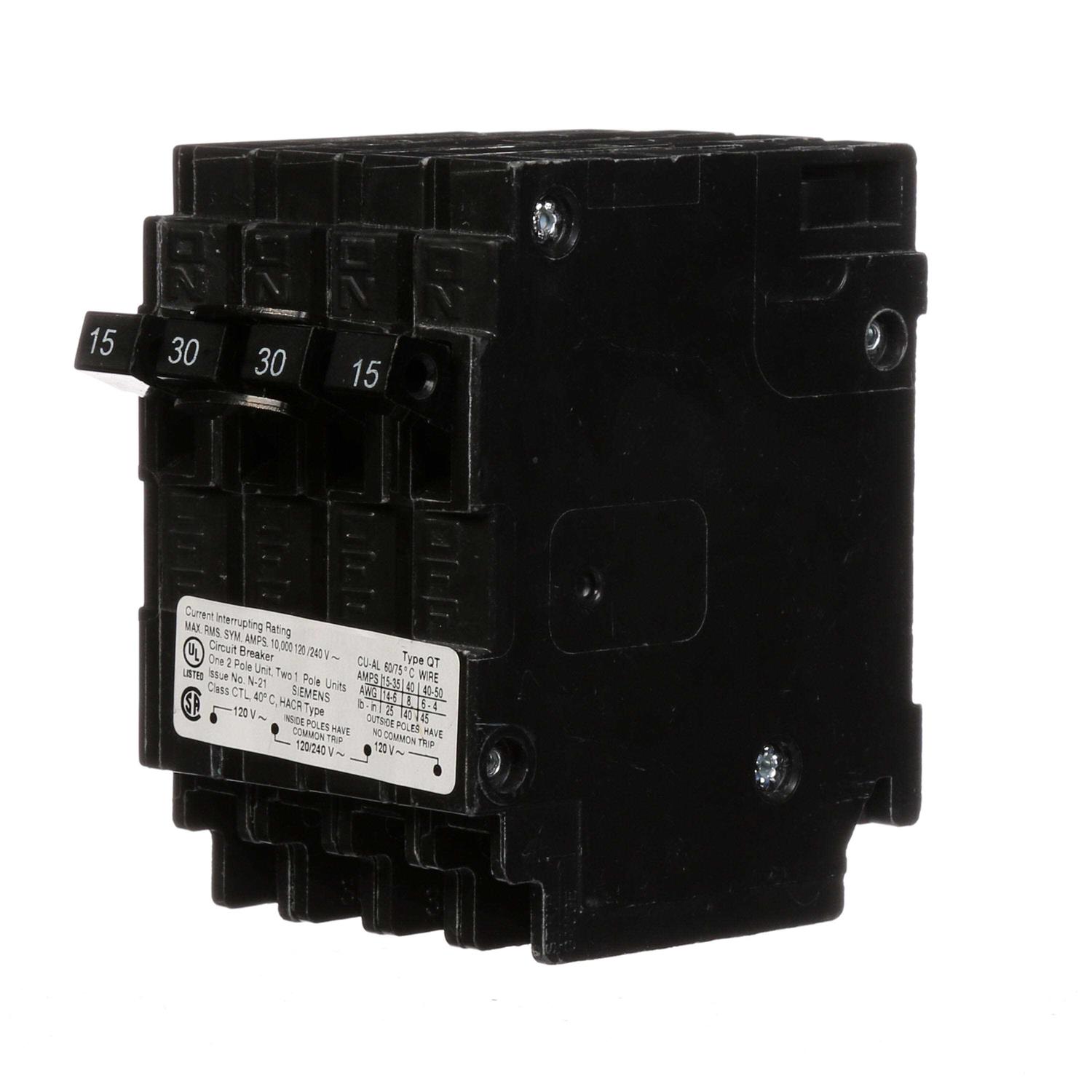 Siemens space saving, plug in circuit breakers are intended for use in Siemens EQ, Siemens Ultimate, ITE, and Gould load centers and meter combinations that are rated to accept type QT breakers. Check wiring diagram to confirm. The triplex breakers provide two single pole and one double pole breakers in half the space. These triplex, 1/2-Inch frame breakers are ideal when new circuits are required in a panel that has no available spaces. Siemens strongly recommends against the use of “used” breakers. Siemens does not sell used breakers and has not approved any 3rd party sellers to do so.