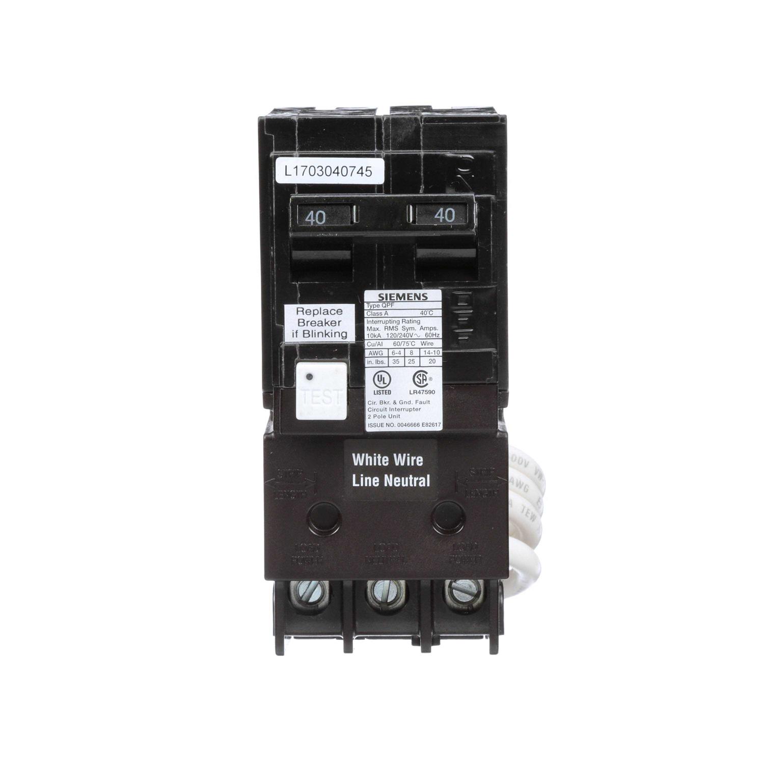 Siemens QF240A 2 Poles Circuit Breakers 40A 120/240V 1 Phase Plug-OnSiemens Single phase 2 poles circuit breakers comes with the current rating of 40A and voltage rating of 120/240V. It features an interrupt rating of 10kA at 240V and has Plug-On mounting type. It is complete with thermal magnetic protection and Long-Time and Instantaneous functions. This Breaker is UL listed and CSA certified.