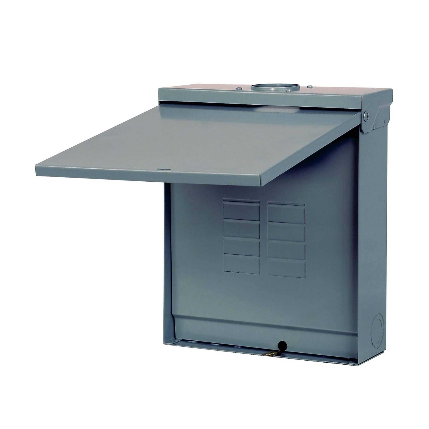 Code-gauge steel enclosure. 10,000 AIR. HS-hubs sold separately. One piece copper bus bar, 100% circuit breaker twist outs. Positive load side circuit breaker hook rail. Suitable for use as service equipment when a main breaker (125 A maximum) is back-fed in a branch position and used with main breaker retainer clip No MBR1. When used as service equipment, any unused neutral position may be used for equipment grounding. Rotate entire device 180 deg for bottom feed. Gray enamel finish. UL listed, complies fully with NEC and UL requirements for Class CTL. 12-1/8 in x 14-3/4 in x 4-1/4 in.