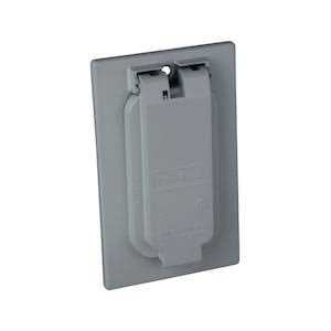 Sigma’s weatherproof one-gang GFCI covers provide protection to outdoor vertical GFCI receptacles. Their rugged, die-cast construction features a self-closing lid which prevents moisture penetration when receptacles are not in use and compliment weatherproof one-gang boxes. GFCI covers are powder coated for corrosion resistance and include hardware and gasket.