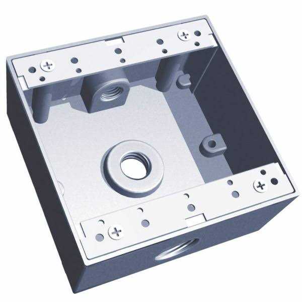 Sigma’s weatherproof two-gang boxes provide a junction for conduits and can house up to two wired devices such as receptacles or switches. The rugged, die-cast construction prevents moisture penetration making the boxes suitable for wet, damp or dry locations. Boxes are powder coated for corrosion resistance and feature a ground screw for secure installation. Boxes include hardware, closure plugs and a pre-installed ground screw.