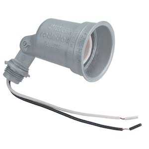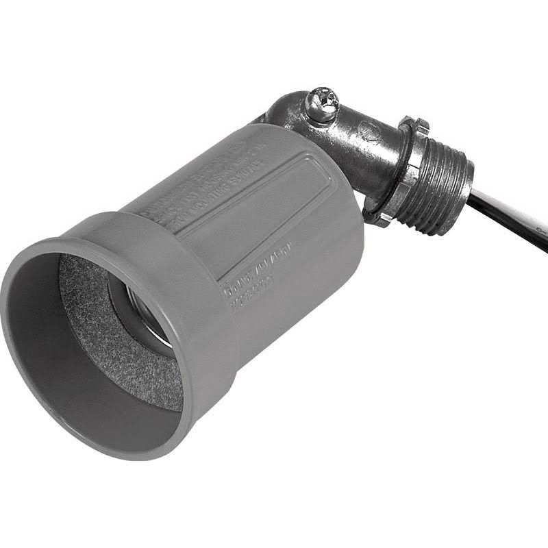 Weatherproof lampholder used for outdoor security or aesthetic applications with an adjustable head to illuminate desired area. Lamps use PAR38 bulbs (150 Watt max.) and are compatible with most LED, incandescent or CFL bulbs (bulbs not included). Flexible installation options allow the light to be activated by a switch, or with a motion or dusk-to-dawn sensor to fit your lighting needs. Die-cast construction and powder coated for corrosion resistance. Product is cULus listed and suitable for wet locations. Sigma’s weatherproof lampholders are used for outdoor security or aesthetic lighting applications in wet, damp or dry locations. These lampholders fit 1/2-in knockouts in weatherproof boxes and covers. Their rugged, die-cast construction prevents moisture penetration and is powder coated for corrosion resistance. The adjustable lamp head can be angled to illuminate a desired area and can be installed to activate with a switch or using a motion or dusk-to-dawn sensor (sold separately).