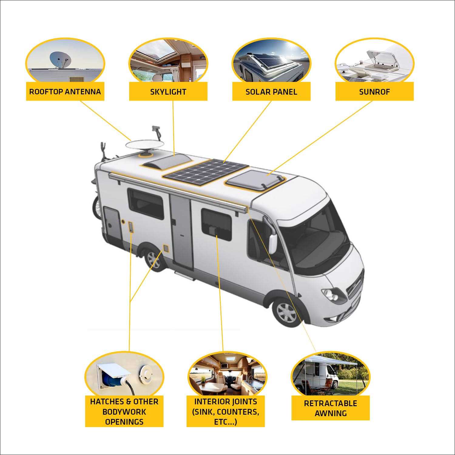 Sikaflex is the most well known brand of one component polyurethane sealant/adhesive in the world. This fast curing product provides permanent elastic adhesion to a number of surfaces with excellent cut and tear resistance. Considered by many to be the ultimate choice in truck, trailer RV, and bus manufacturing. Designed to resist the shock and abuse encountered over countless road miles, Silaflex-221 will maintain its strength and adhesion over the long haul. Sikaflex-221 is weather resistant, sandable, paintable and NSF approved for potable water and incidental food contact. Primerless to glass. 6 Hour Minimum Drive Away Time (MDAT); tested according to FMVSS 212. Short cut-off string. Cost effective. Avoid contact with alcohol and alcohol containing solvents during cure. Do not apply over silicones or in the presence of curing silicones.