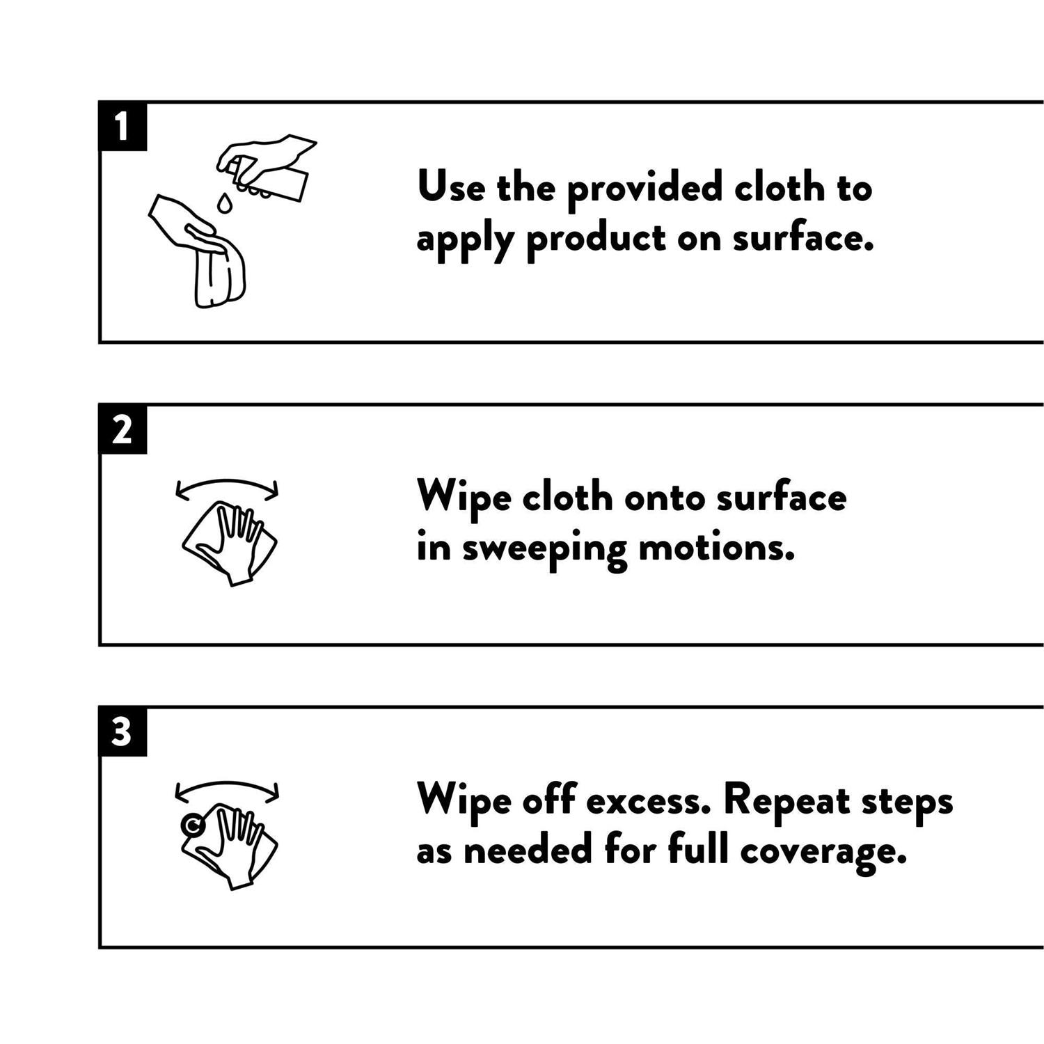 - Easy Application: Wipe on with any soft cloth, and then wipe off excess. No drying or curing time required