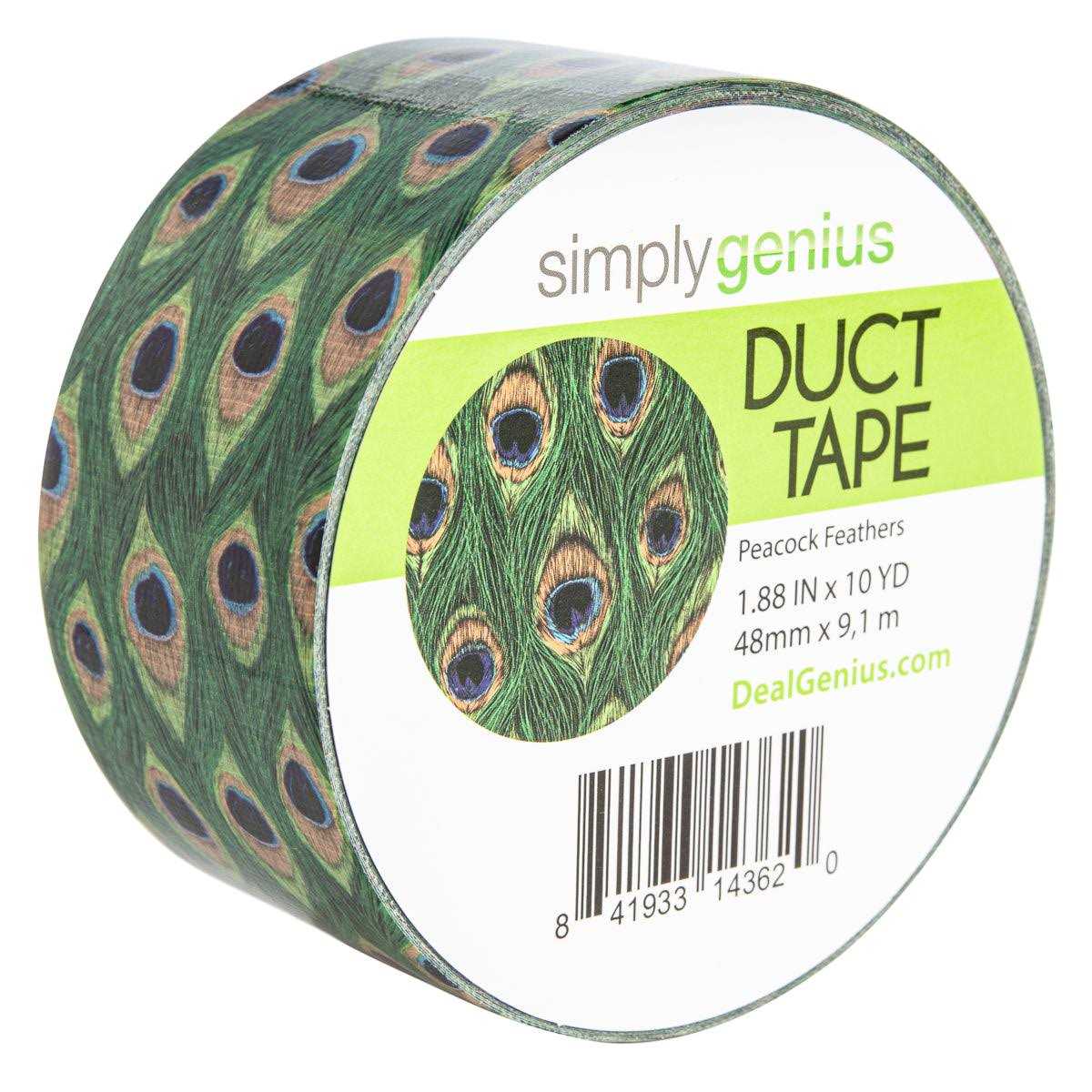 Simply Genius (Single Roll) Patterned Duct Tape Roll Craft Supplies for Kids Adults Colored Duct Tape Colors, Peacock Feathers