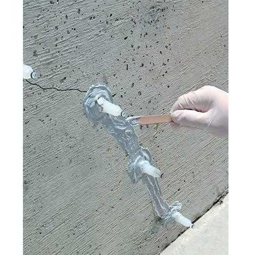 Crack-Pac Flex-H2O is a high solids hydrophobic polyurethane injection resin designed to seal leaking cracks, voids or fractures in concrete or solid masonry. The polyurethane is packaged in the cartridge and an accelerator is packaged in the nozzle. When the two are combined in the cartridge and mixed, the result is a low viscosity, water activated polyurethane. When the resin encounters water as it is injected into the crack, it becomes an expanding foam that provides a flexible seal in leaking and non-leaking cracks.