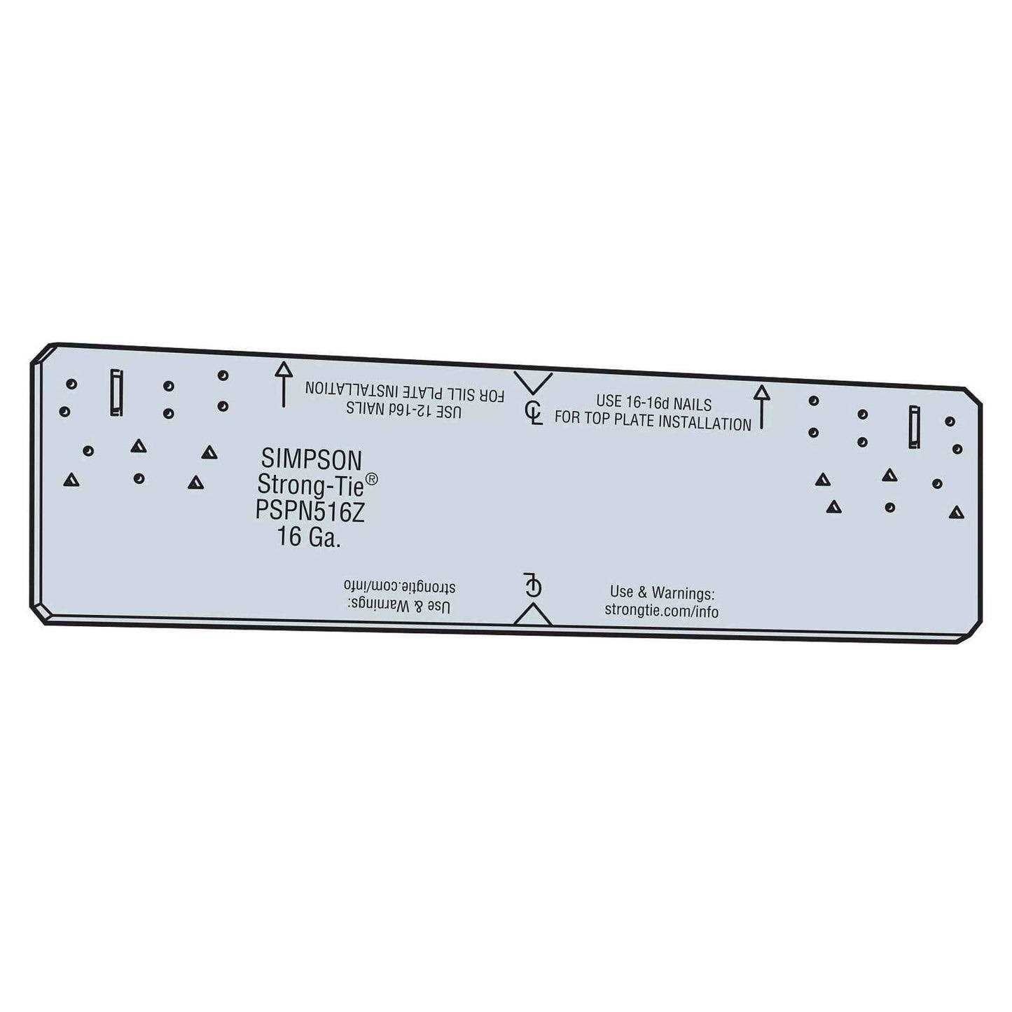 Made in United States These protective plates meet IBC, IRC, UBC, and City of Los Angeles code requirements for HVAC and pipes in walls. It protects pipes from nails piercing them. The PSPN516Z meets structural and protection requirements with 1 strap. Install with 16d common hot dip galvanized nails. 16-gauge galvanized steel. Some sizes available in ZMAX coating.