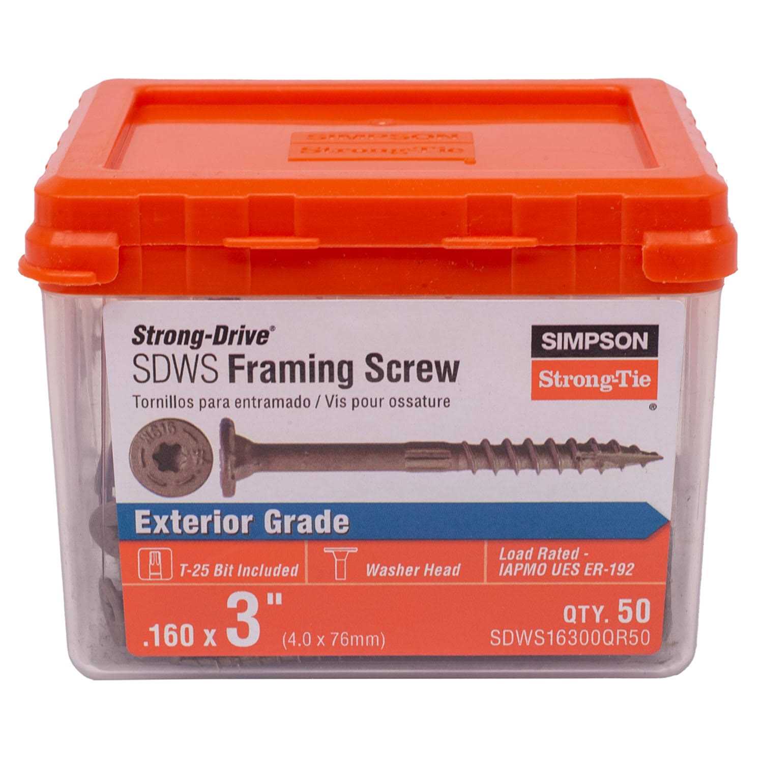 Simpson Strong-Tie SDWS16300QR50 Framing Screws Strong Drive 3 L T25 Tan