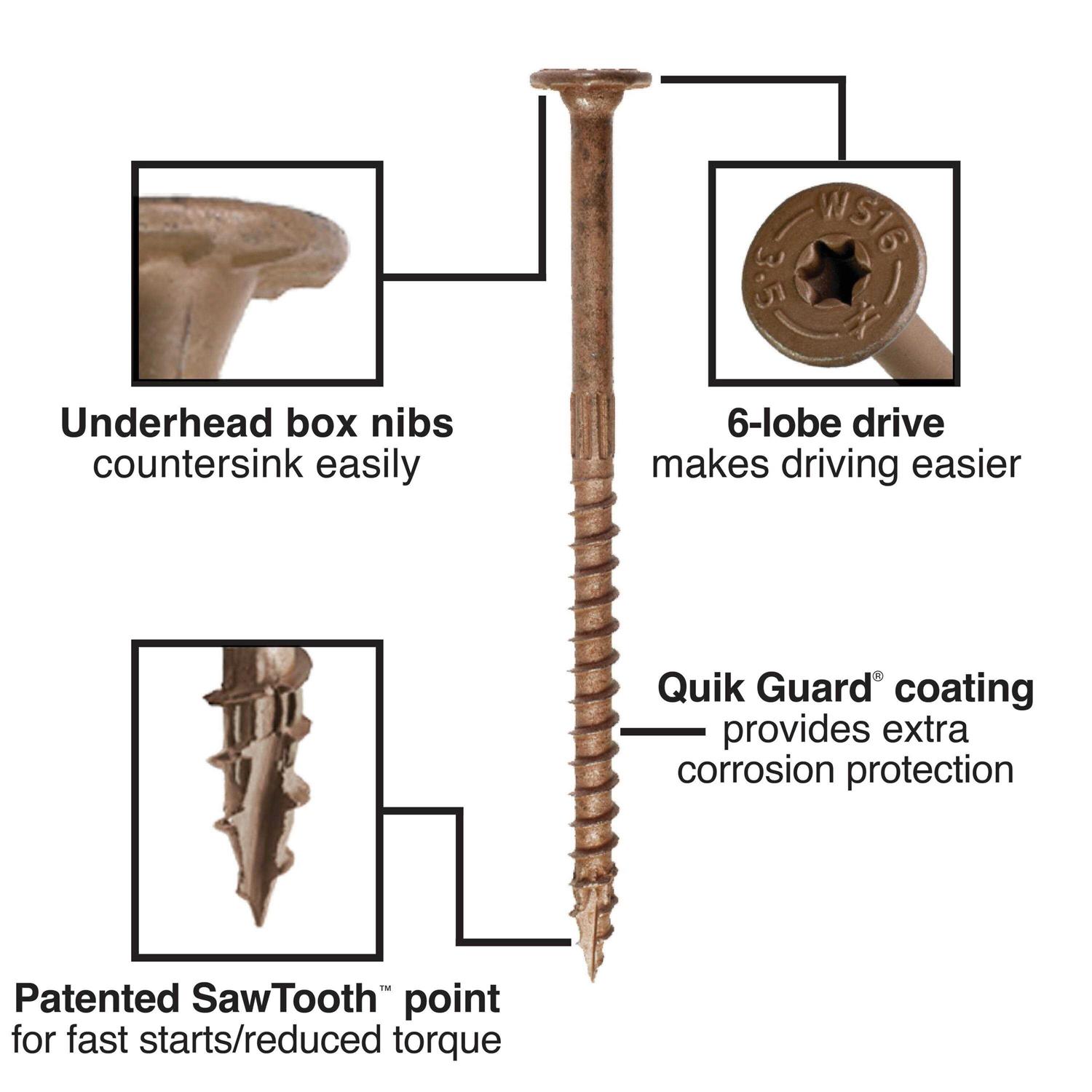 Simpson Strong Tie SDWS16312QR50 0.16×3-1/2 in. Tan Star Drive Low Profile Washer Head SDWS Framing Screws, 50/Box