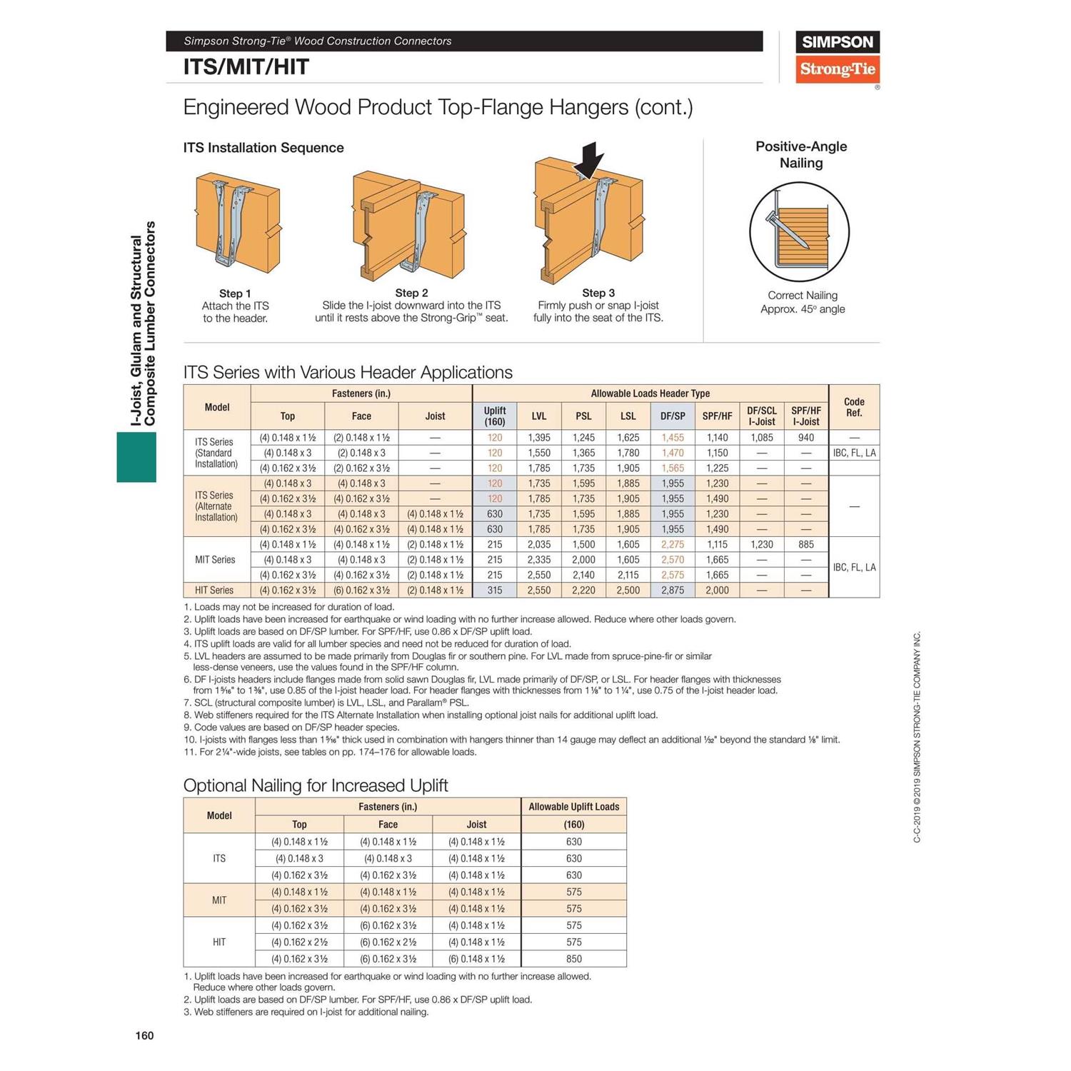 Joist hangers are designed to provide support underneath the joist, rafter or beam to provide a strong a connection. Simpson Strong-Tie offers a diverse line of hangers to handle almost any application with top flange, concealed flange and field-skewable and slopeable options. The innovative ITS sets a new standard for engineered wood top-flange hangers. The ITS installs faster and uses fewer nails than any other EWP top-flange hanger. The new Strong-Grip seat and Funnel Flange features allow standard joist installation without requiring joist nails resulting in the lowest installed cost.