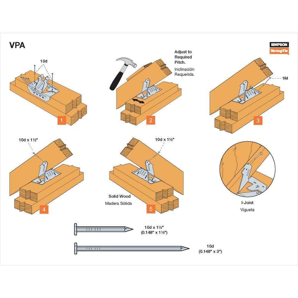 The VPA may be sloped in the field, offering a versatile solution for attaching rafters to the top plate. It will adjust to accommodate slopes between 3:12 and 12:12, making it a complement to the versatile LSSU. This connector eliminates the need for notched rafters, beveled top plates and toe nailing. The Strong-Tie VPA2 Adjustable U Hanger features a G90 galvanized finish for added corrosion resistance and requires the use of hot-dip galvanized fasteners which meet the specifications of ASTM A153.