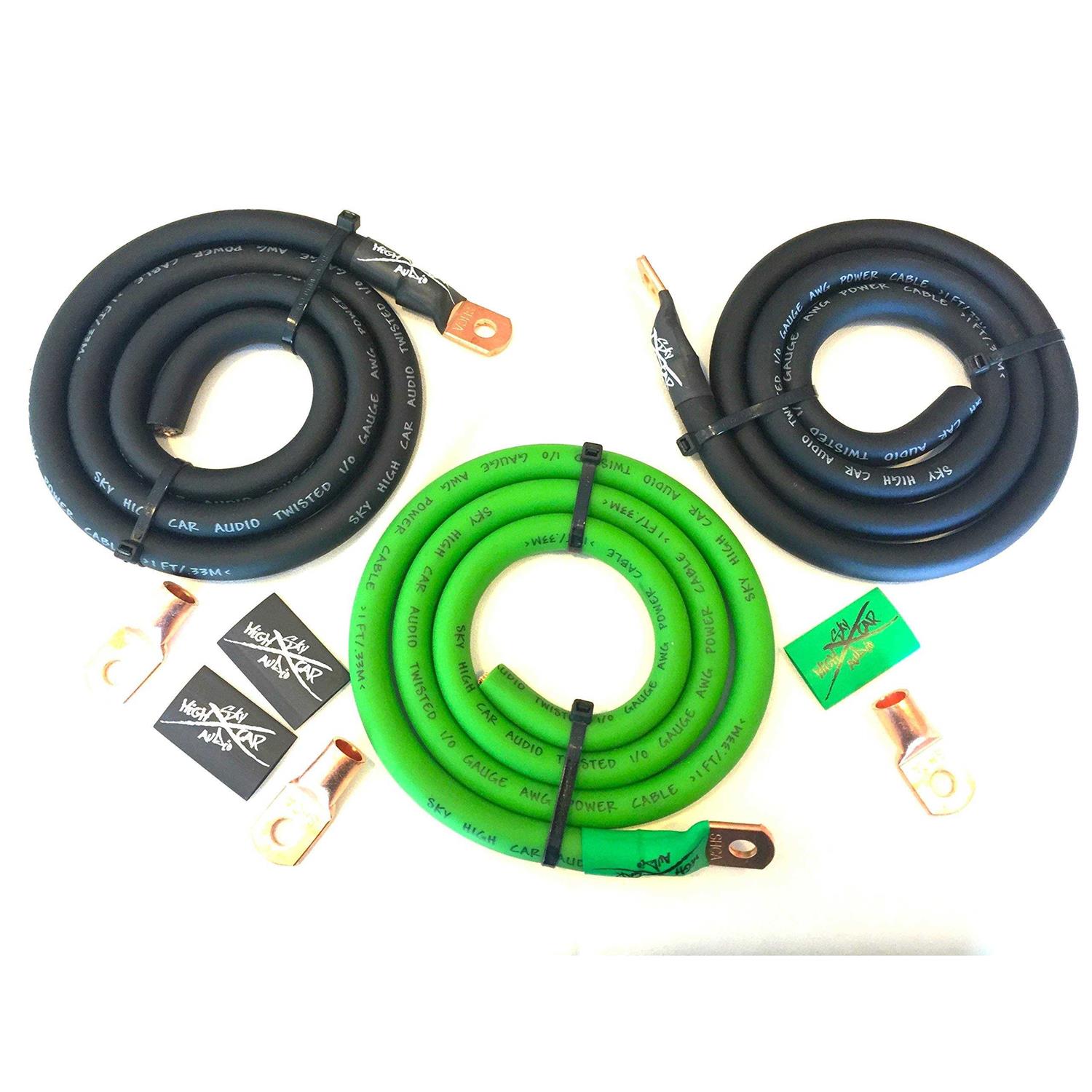 Sky High Oversized 1/0 Gauge AWG Big 3 Upgrade Green/Black Electrical Wiring Kit