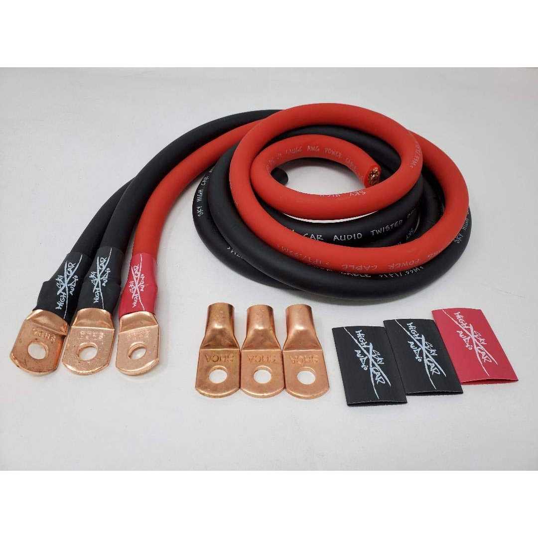 Sky High Oversized 1/0 Gauge AWG Big 3 Upgrade Red/Black Electrical Wiring Kit