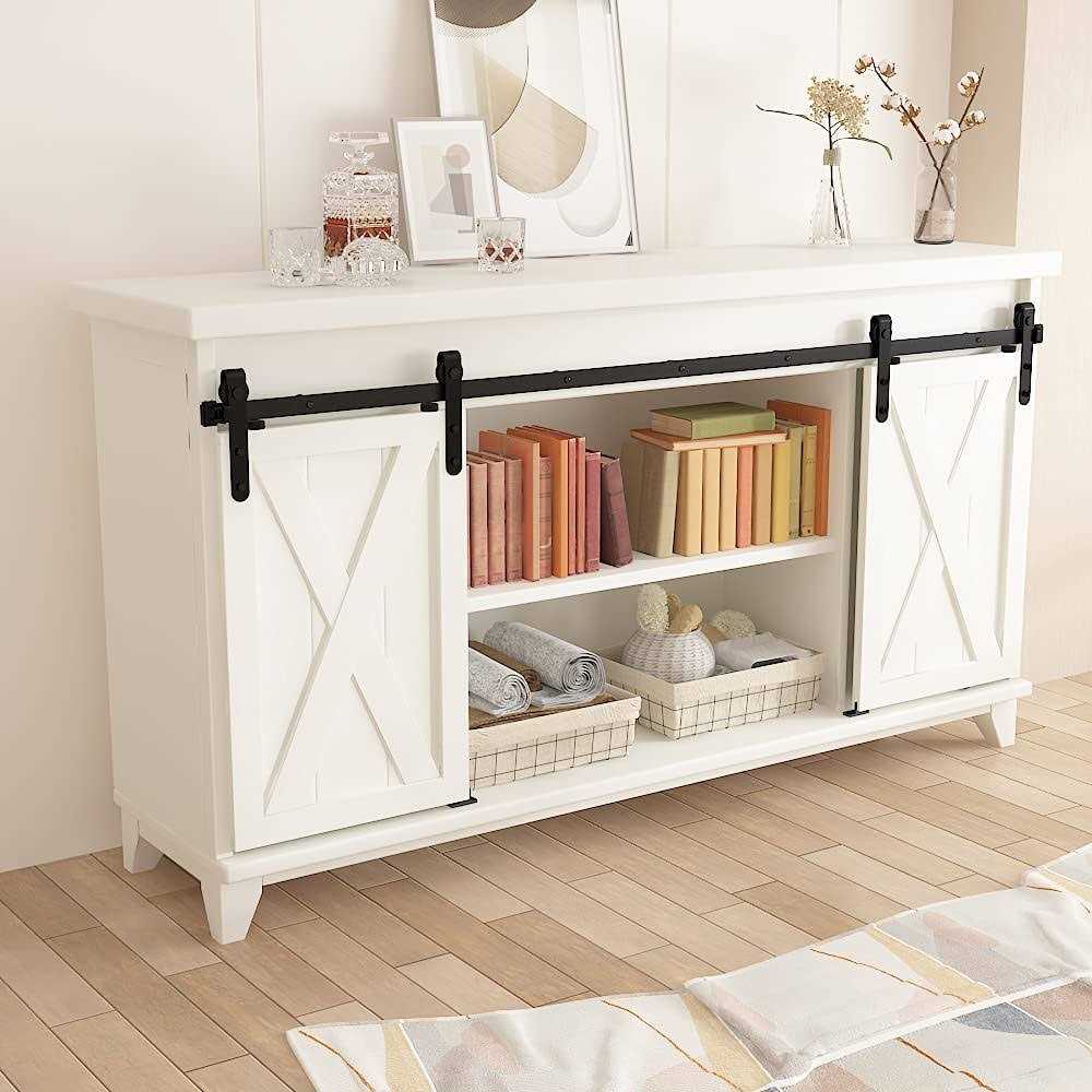 Be the first to review “skysen Double Door Cabinet Sliding Barn Door Hardware Kit Super Mini Sliding Door Hardware for Wardrobe Cabinet TV Stand”