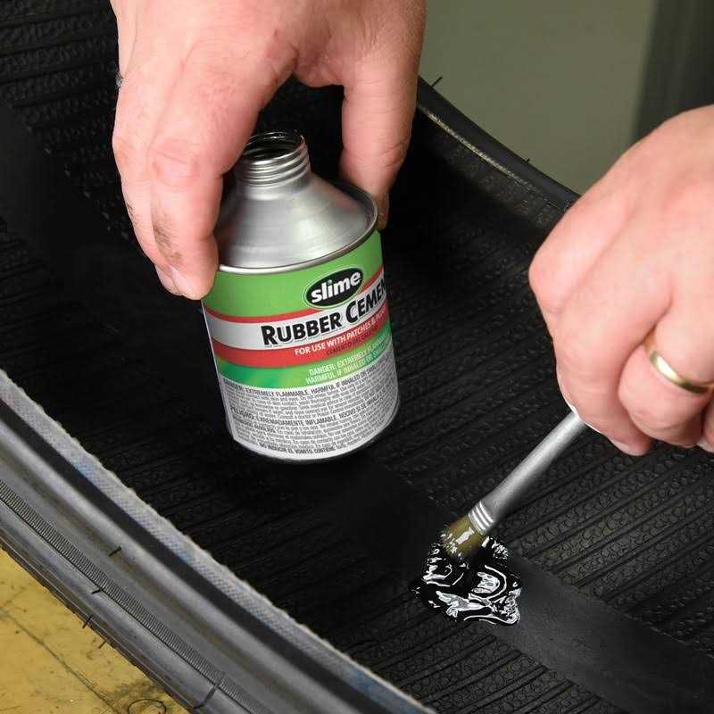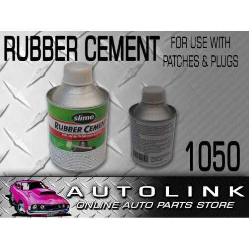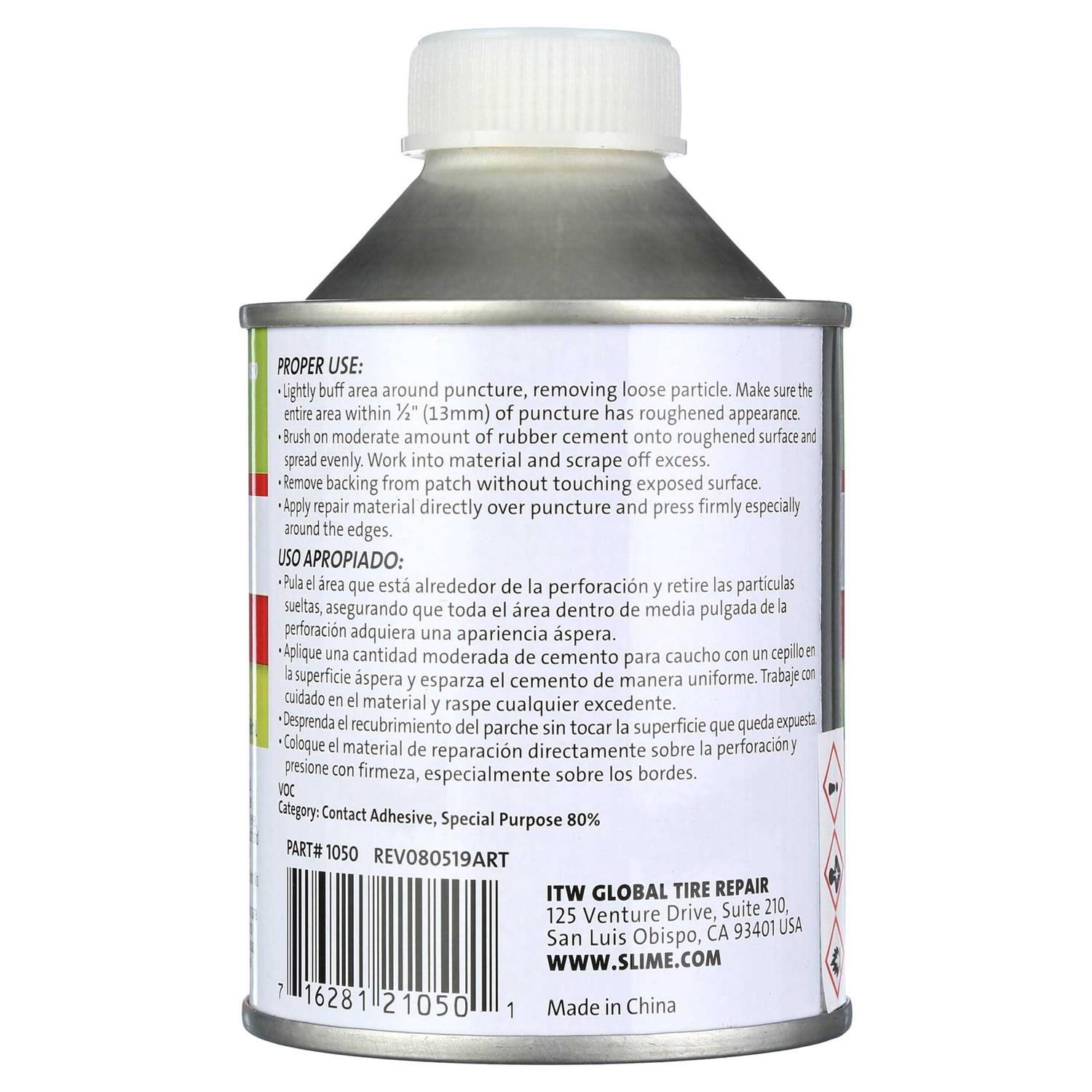 This classic can of Rubber Cement brings back memories of our elementary school days! Includes a no-mess brush applicator so you can apply on all your tires. Partner with a Slime plug or patch kit for a complete repair. PROPER USE: Buff area around puncture lightly, removing loose particles and making sure entire area within 1/2 inch of puncture has roughened appearance. Brush on a moderate amount of rubber cement onto roughened surface and spread evenly. Work into material and scrape off excess. Remove backing from patch without touching exposed surface. Apply repair material directly over puncture and press firmly, especially around the edges.