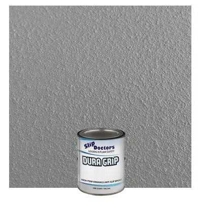 Dura Grip High-Performance Non-Slip Epoxy Paint is an anti-slip paint coating specifically designed to provide a hard, durable barefoot-friendly textured non-slip paint finish on a variety of substrates. Dura Grip non-slip paint is ideal for use on slippery diamond-plate metal ramps, slippery garage floors, slippery boat decks, slippery trailers, slippery stairs, slippery locker room floors, slippery laundry room floors and other residential and industrial areas where anti-slip protection is desired. Dura Grip anti-slip paint coatings were designed to prevent slips and falls in your home and business. Built to last, Dura Grip is a tough and durable anti-slip paint that can be used on multiple types of surface including slippery steel ramps, slippery fiberglass, slippery aluminium floors, slippery concrete floors, slippery wooden floors and decks, slippery tiled floors and other slippery natural stone floors. It’s perfect as a non-slip commercial paint and non-slip residential paint for floors and you can walk comfortably on Dura Grip even with bare feet. Dura Grip anti-slip textured paint is available in three sizes and an assortment of colors including black, clear, dark brown, light gray, medium gray, safety blue, safety yellow, safety red, sand and white. Dura Grip anti-slip paint offers a simple non-slip paint solution to reduce the likelihood of slip-and-fall injuries. Application of our high-performance textured anti-slip epoxy paint coating provides safe foot traffic in both wet and dry conditions. Single component, the oil-based anti-slip paint coating is chemical resistant and durable to withstand heavy traffic. The barefoot-friendly non-slip floor paint texture offers non-skid protection for bare feet and tender paws, making it perfect for decks and patios. Equally effective for tough surfaces such as slippery aluminum ramps, slippery truck lift gates, slippery metal stairs and ideal to paint slippery ceramic or porcelain tiles.